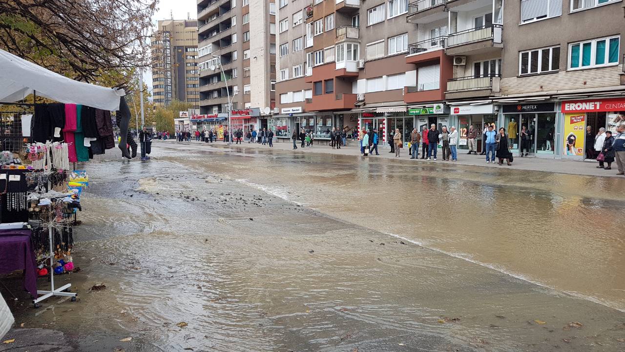VIDEO+FOTO: Opet “jezero” na trgu u centru grada – Naš prijatelj i saradnik Jasmin Blicko Hadžić zabilježio je danas još jedno pucanje cijevi i poplavu u centru grada. Zzbog pucanja cijevi na vodovodnoj mreži ViK-a, došlo je do plavljenja pješačke zone u centru grada. Iz ViK-a su saopćili da je kvar detektovan i da se radi o uzdužnoj pukotini na ljevanoj cijevi, promjera 200 mm.