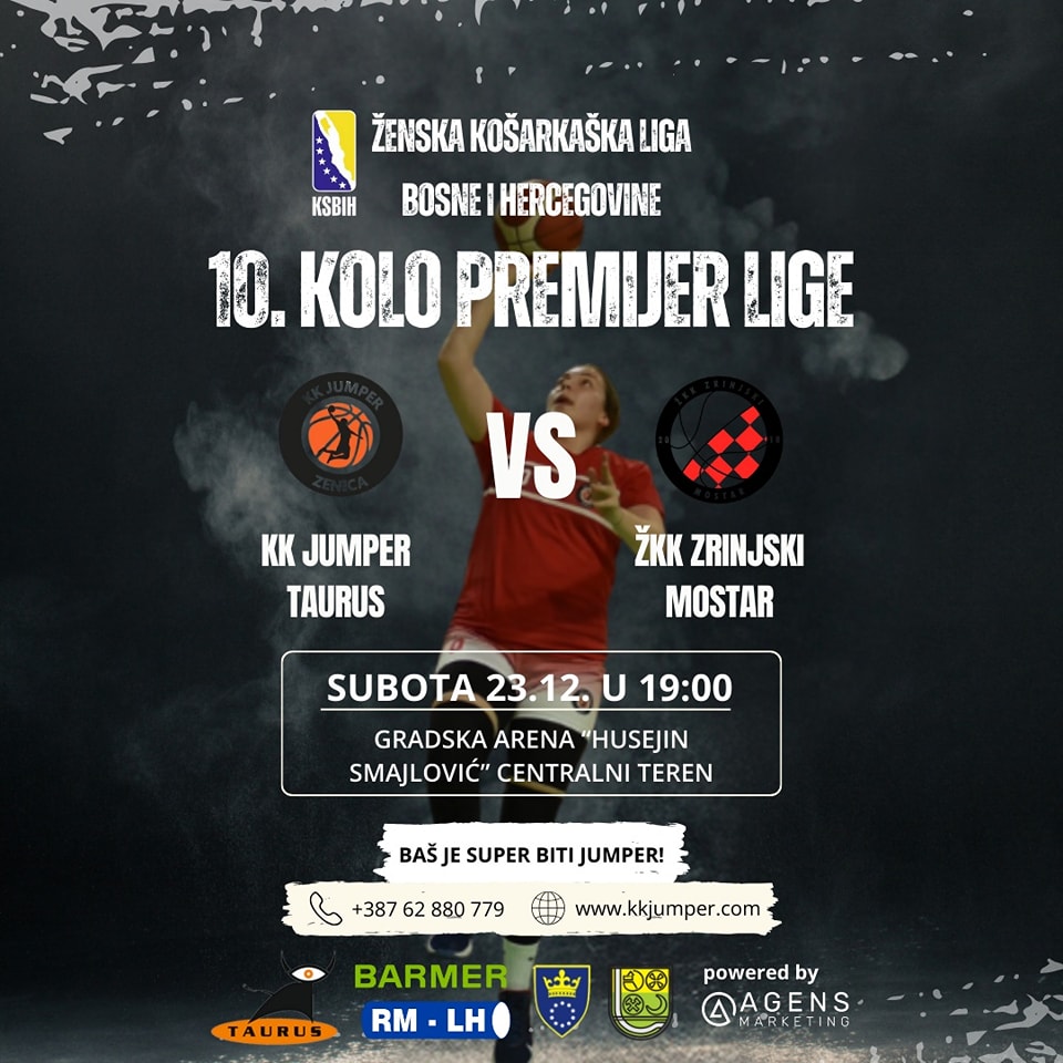 Zenički KK Jumper je ove subote, u 10.kolu, domaćin ekipi ŽKK „Zrinjski 2010“ iz Mostara, koja je na omjeru od 4 pobjede, 5 poraza, 13 bodova, osmo mjesto na tabeli.