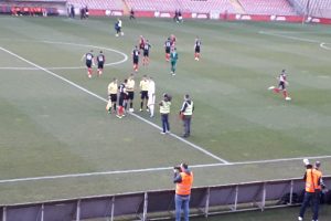 U minuti produžetka prvog poluvremena slobodni udarac za Mladost sa desme strane, gužva pred golom Čelika, ali sudija pokazuje ofsajd poziciju.
