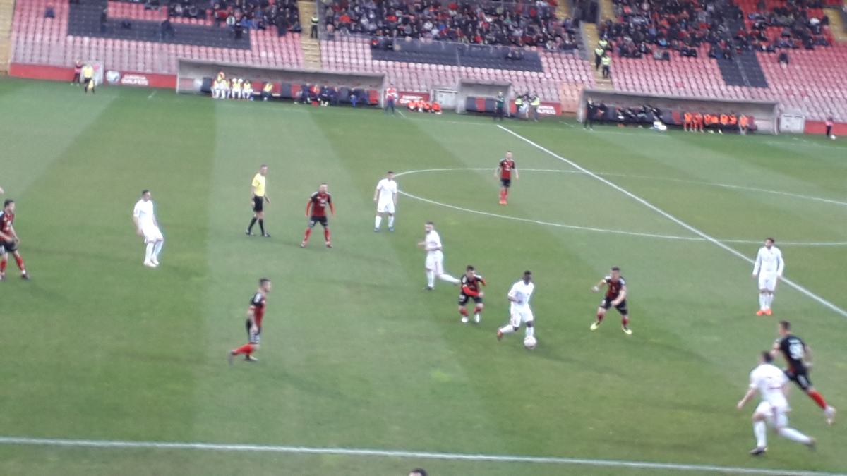 U 3.minuti dobar udarac Welbecka, lopta odlazi pored gola domaćih, novi pokušaj gostiju u 8′, ali ponovo pored gola. U narednoj minuti šut Hodžića sa 20-ak metara, Velić brani, zatim šut Dilavera u 10′, golman zaustavlja udarac. U 12.minuti šutira Anđušić, ali pored gola. Dobar šut Jurine, ali je Marković izblokirao siguran gol.