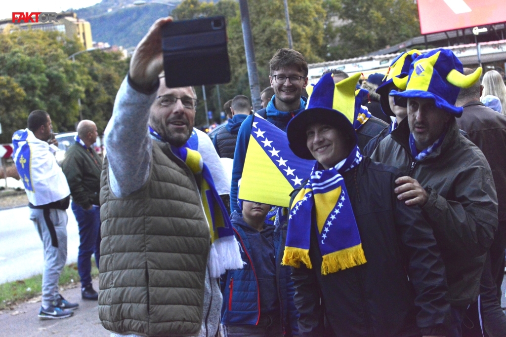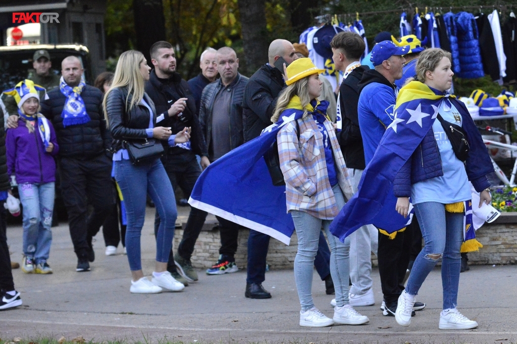 Navijači iz svih dijelova Bosne i Hercegovine i ostatka Evrope stižu u Zenicu, pjesma se čuje od popodnevnih sati, a ulice su obojene u plavo-žute boje.
