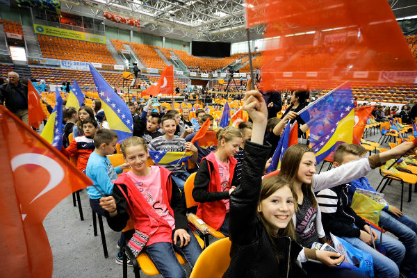 VIDEO+FOTO: pogledajte detalje Dječijeg festivala u Areni – Turski ministar kulture i turizma Nabi Avci u svom obraćanju na Dječijem festivalu danas u Zenici zahvalio se svim roditeljima iz BiH koji su podstakli svoju djecu da izačavaju turski jezik. Na današnjem Dječijem festivalu učestvuje više od 7.000 učenika iz svih dijelova Bosne i Hercegovine, javlja Anadolu Agency (AA).