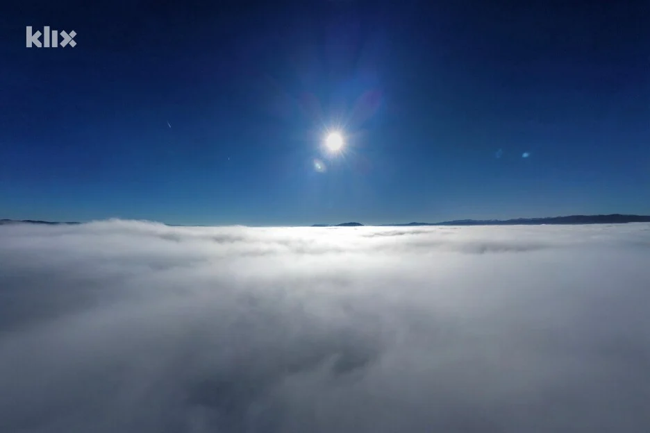 Dok su u gradu vidljivost i zrak otežavali svakodnevne aktivnosti, a dron našeg reportera se više od 400 metara probijao kroz maglu dok nije došao do vedrog neba.
