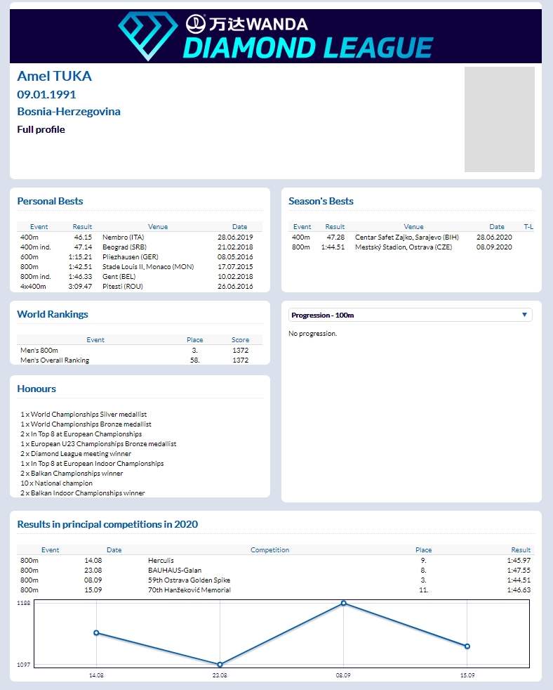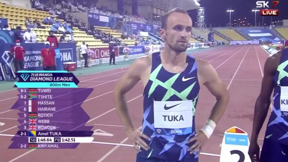 Amel Tuka večeras je bio 4. u utrci Dijamantske lige u Dohi – Katar. U trci na 800. metara svi takmičari su postigli najbolje rezultate sezone, a Tuka je umalo sustigao takmičara ispred sebe, u poznatom finišu u kojem krene sa kraja grupe.