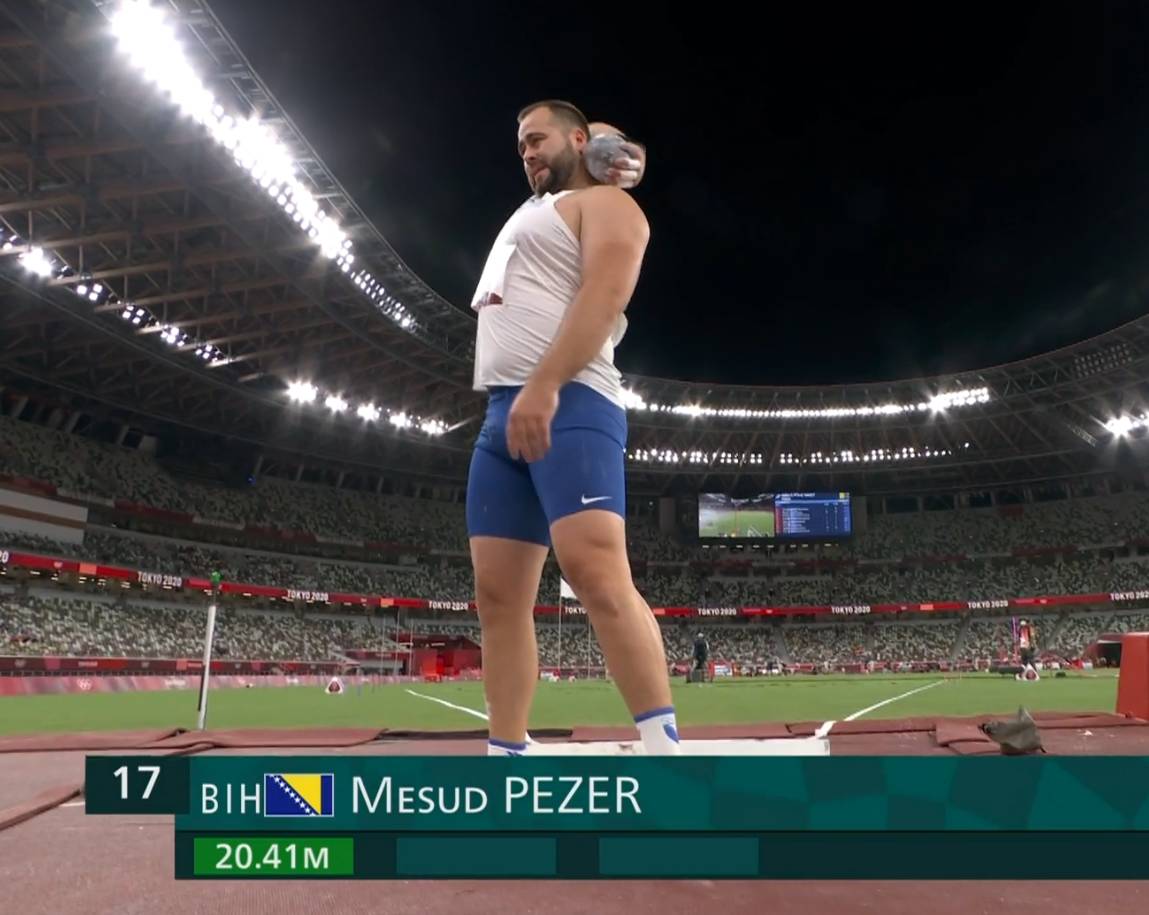 Bosanskohercegovački atletičar Mesud Pezer će nastupiti u finalu bacanja kugle na Olimpijskim igrama u Tokiju! Pezer nastupa u kvalifikacijskoj grupi B sa nekim od najboljih bacača kugle na svijetu, a već u drugom hicu je uspio ući u finale. Granica koja je postavljena za finale je postavljena na 21,30 metara. Pezer je u prvom pokušaju bacio kuglu 20,41 metara a u drugom 21,33 što je dovoljno da se nađe u finalu.