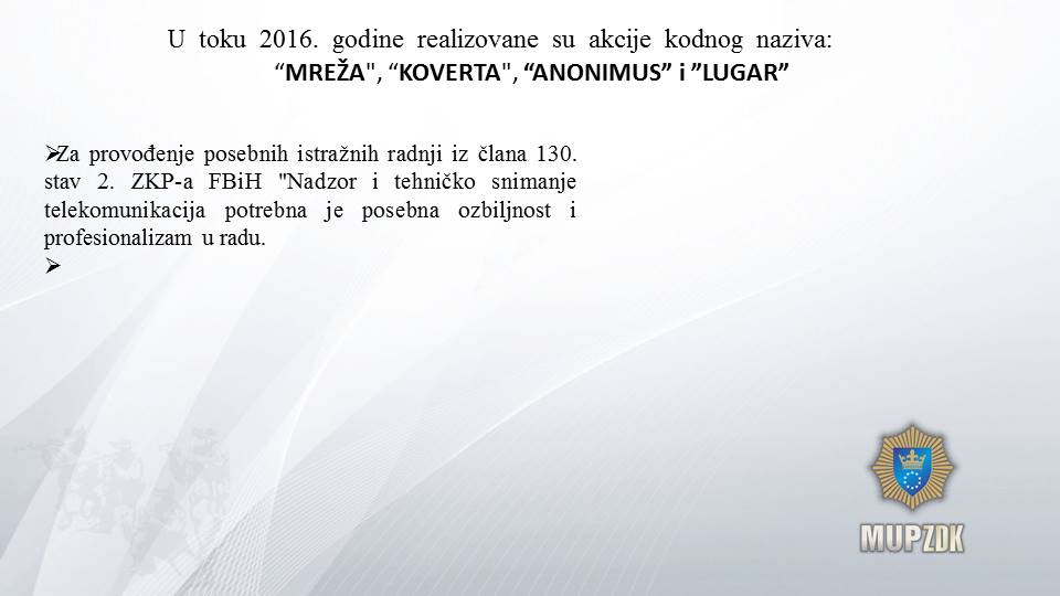 VIDEO+FOTO: pogledajte najveće rezultate MUP-a ZDK u 2016. godini – Ministarstvo unutrašnjih poslova i Uprava policije ZDK, u cjelini mogu biti zadovoljni rezultatima koje su postigli tokom ove godine, kazao je policijski komesar Semir Šut na današnjoj pres konferenciji.