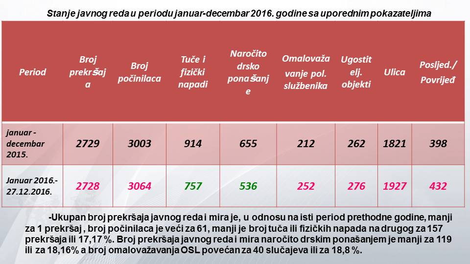 Saradnja policije i građana i dalje je u vrhu prioriteta policijskih službenika. Komesar Šut pohvalio je visok nivo saradnje policije i građana i naglasio da se na ovom planu uvijek može više i bolje. Godina koju ispraćamo, za Policiju je posebno važna zbog početka izgradnje savremenog Centra za obuku policijskih službenika.