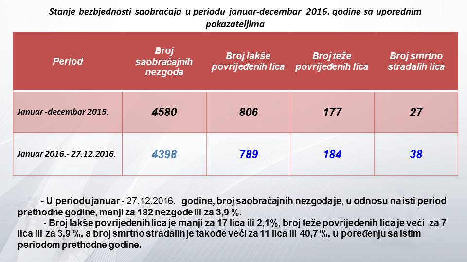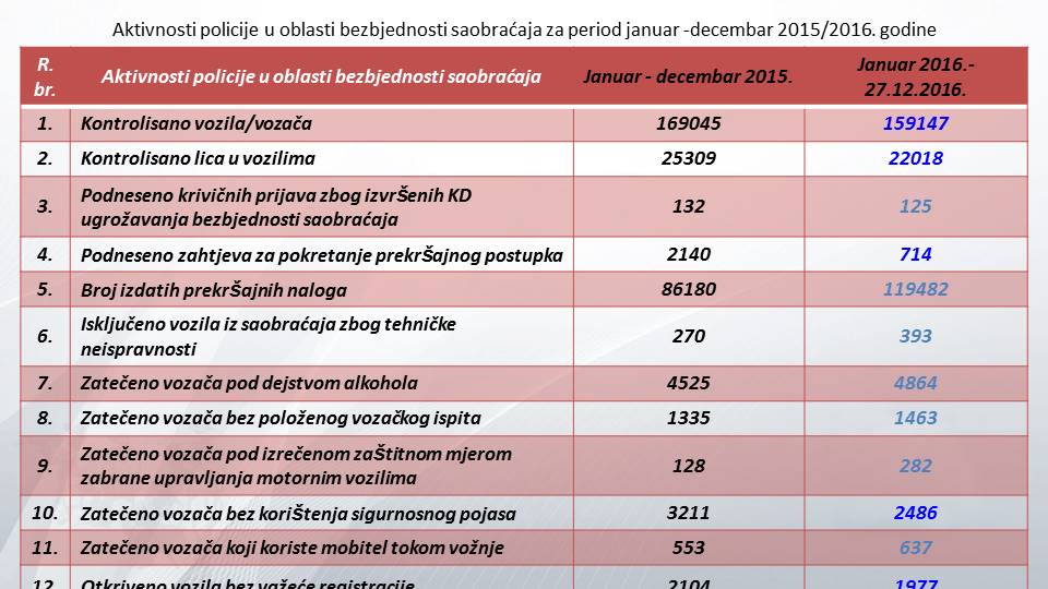 Iako je broj prekršaja i krivičnih djela u oblasti bezbjednosti saobraćaja bio manji nego prošle godine, policijski službenici izdali su čak 35 hiljada prekršajnih naloga više.