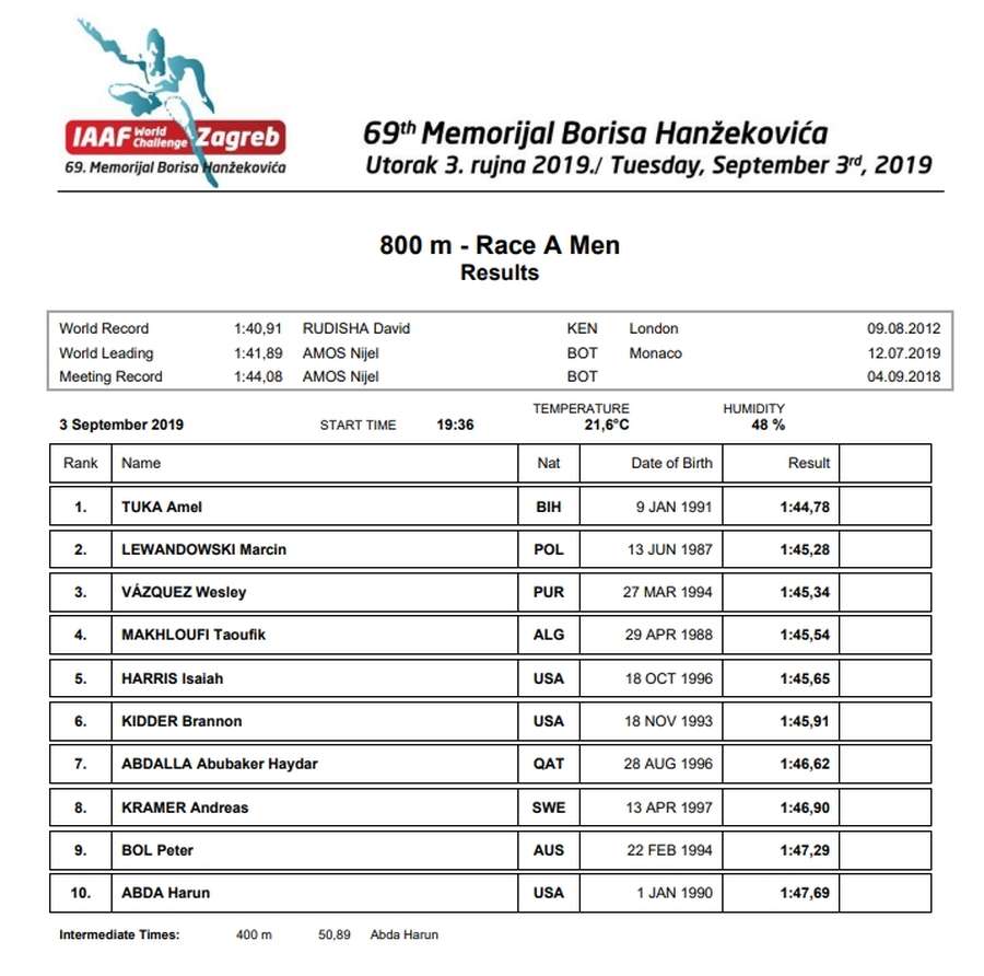 VIDEO+FOTO: Pogledajte pobjedničku utrku i izjavu Amela Tuke nakon istrčanih 1.44.78 u Zagrebu – Amel Tuka je sa sjajnih 1.44.75 pobjedio večeras u Zagrebu na 800 metara na 69. Memorijalu Borisa Hanžekovića, međunarodnom atletskom mitingu u Zagrebu.