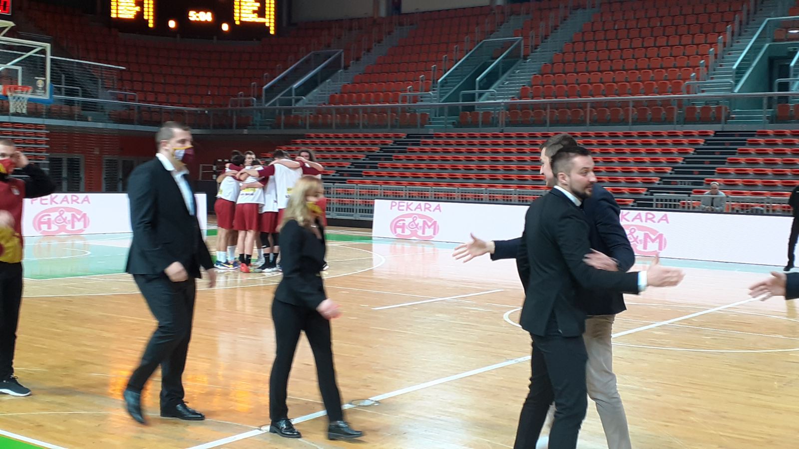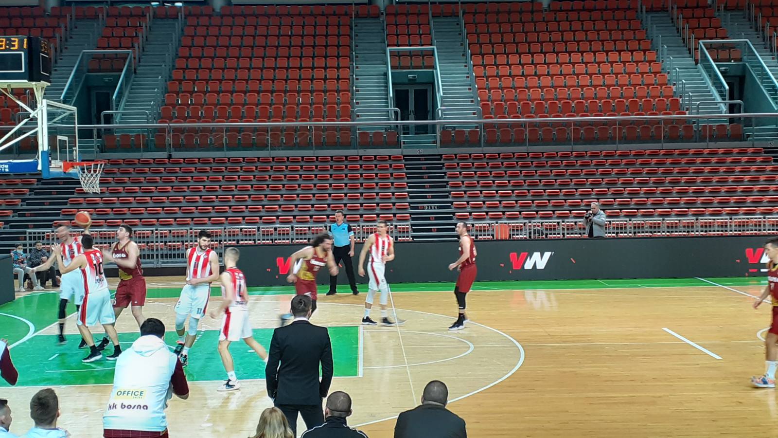 Kroz drugu četvrtinu gosti idu i na plus 16 (25:41), ali domaći, do poluvremena smanjuju na minus devet poena, 37:46, što je i rezultat prvog poluvremena.