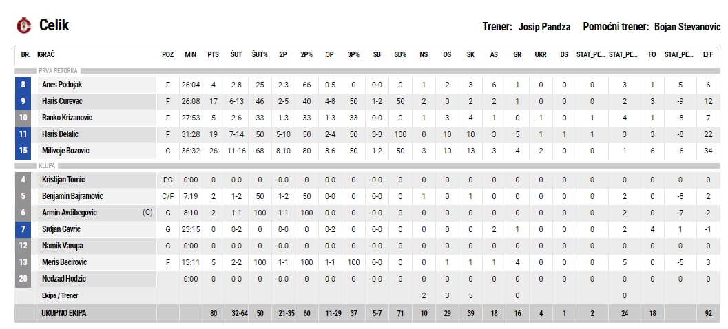 Ovo je sedmi poraz košarkaša Čelika uz 11 pobjeda od 18 odigranih utakmica u tekućem prvenstvu, u drugom i 15. kolu bili su slobodni.