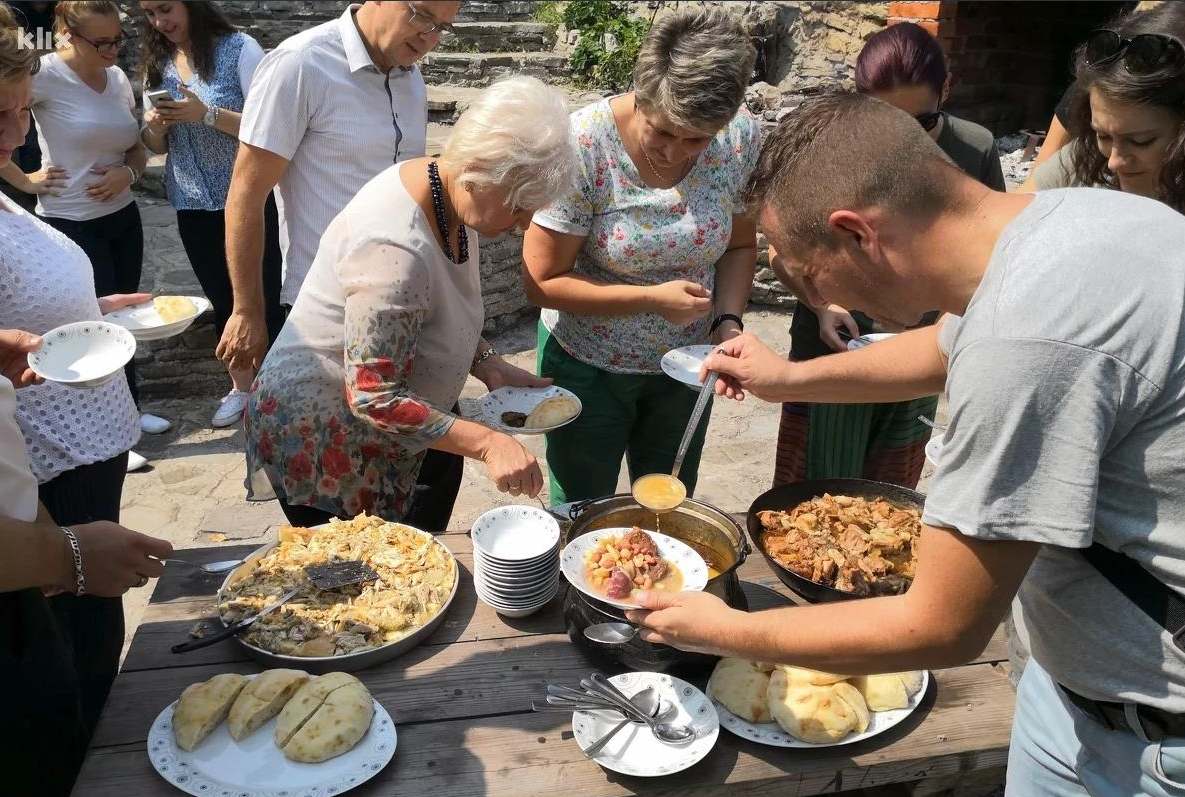 VIDEO+FOTO: Potkriža je srednjovjekovno jelo koje od zaborava čuvaju mještani Vranduka – Obilježavajući duh srednjovjekovne Bosne na tvrđavi u Vranduku kod Zenice posjetioci su imali priliku uživati i u hrani iz tog vremena, a na jelovniku se našla i potkriža od pilećeg mesa. Osim sača u kojem se pripremalo više vrsta mesa, te gljiva koje su nakon prženja došle do stola, tradicionalna potkriža je izazvala oduševljenje prisutnih koji su željeli uživati u okusu hrane iz srednjovjekovnog vremena. Hranu su pripremale žene iz Vranduka Senada Kahriman, Senada Beširević i Rabija Bajramović koje su za svoje specijalitete dobile samo riječi hvale. Kahriman je u razgovoru za Klix.ba objasnila način pripreme tradiconalne potkriže.