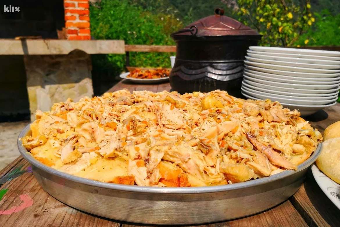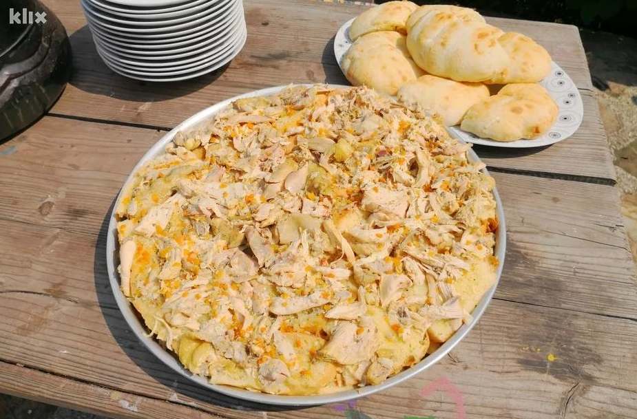 “Na početku je potrebno napraviti pogaču čiji recept nije isti od sredine do sredine. Mi smo ovu pogaču napravili od običnog brašna, vode, soli i suhog kvasca. Nakon što se pogača ispeče, potrebno je izrezati je na komade koje ćete redati u tepsiju. U drugom dijelu potkriže pripremate piletinu koja se treba raskuhati, a nakon što se raskuha u vodi sa lukom i vegetom, temeljac ne bacajte”, govori Kahriman. U nastavku ističe kako je luk i piletinu potrebno isjeckati na sitne komadiće, a potom poredati prvi sloj pogače na koji će se staviti piletina i luk te sve to zaliti temeljcem.