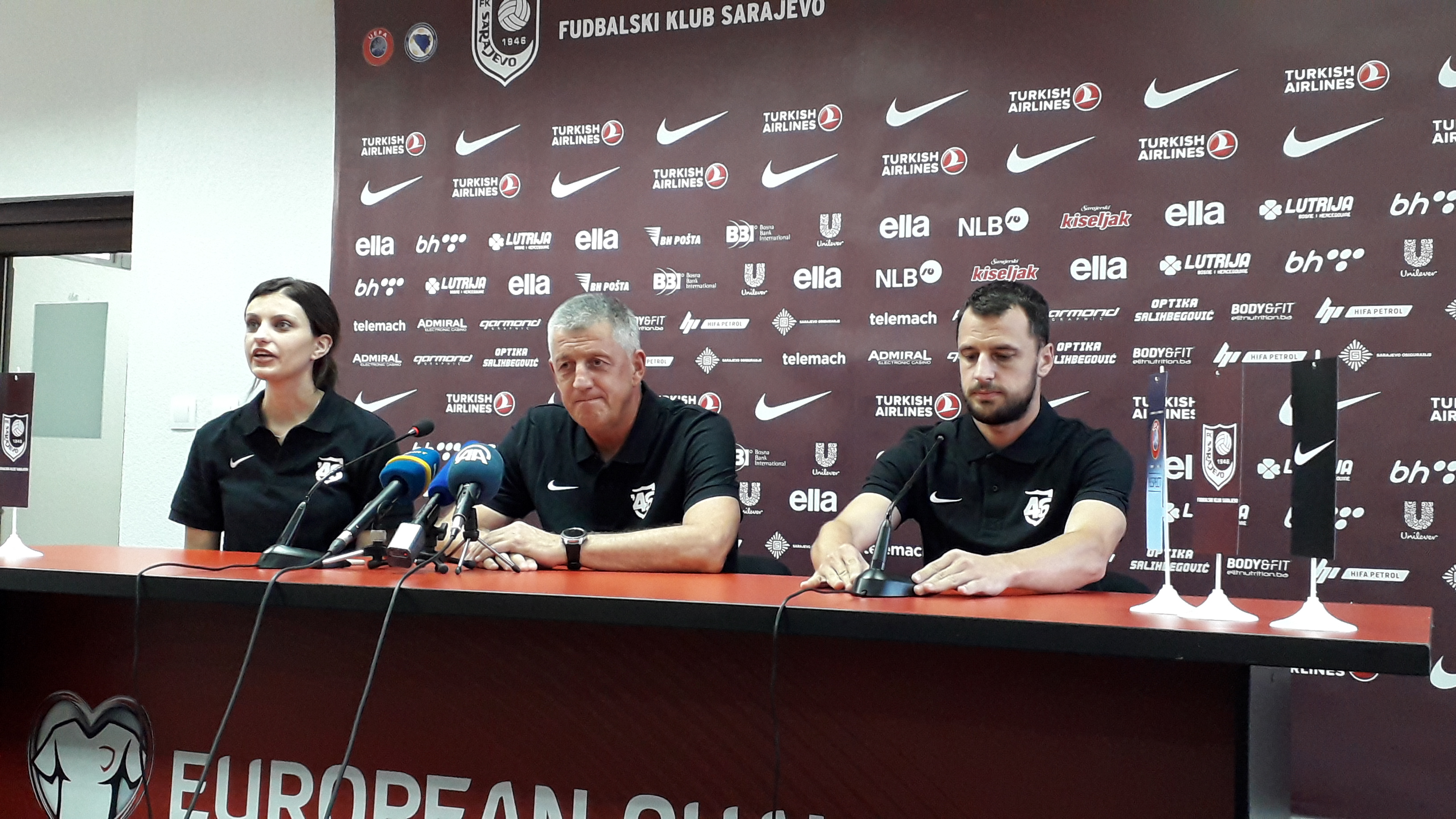 Na današnjem pressu prisutnim su se obratili Husref Musemić, šef stručnog štaba FK Sarajevo i Krste Velkoski, kapiten FK Sarajeva.