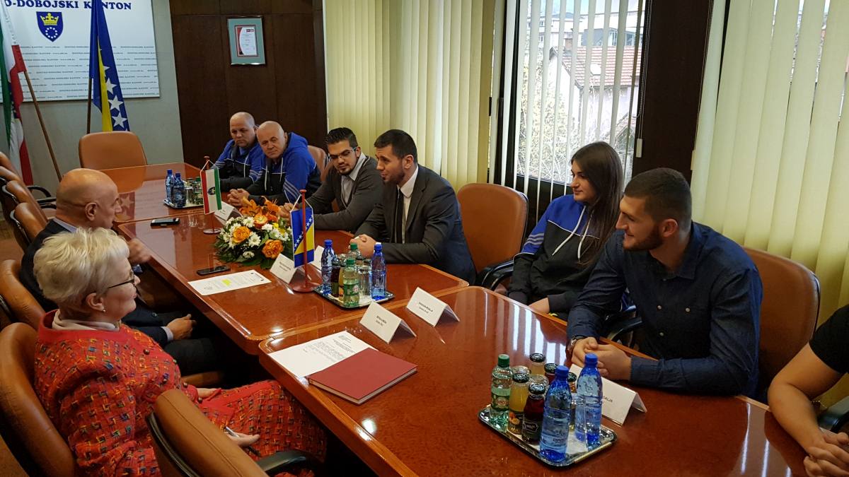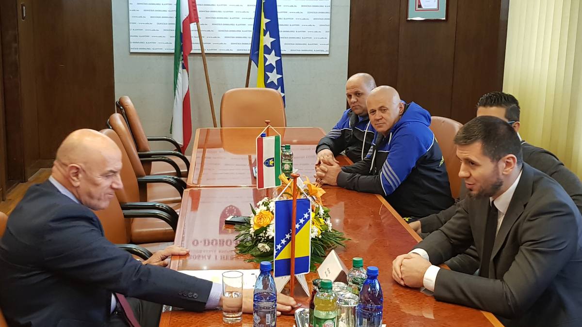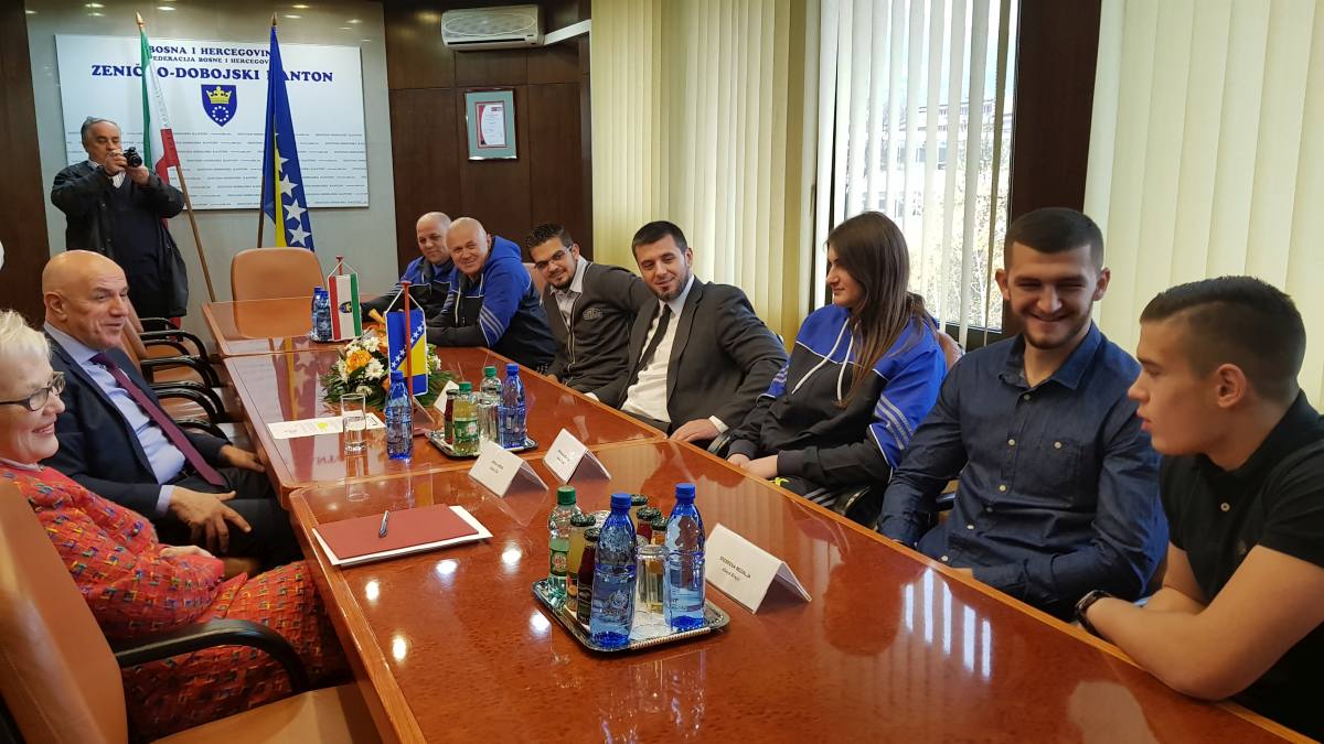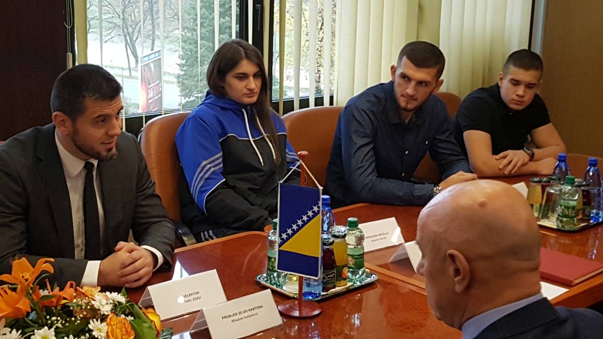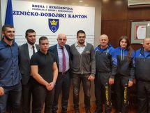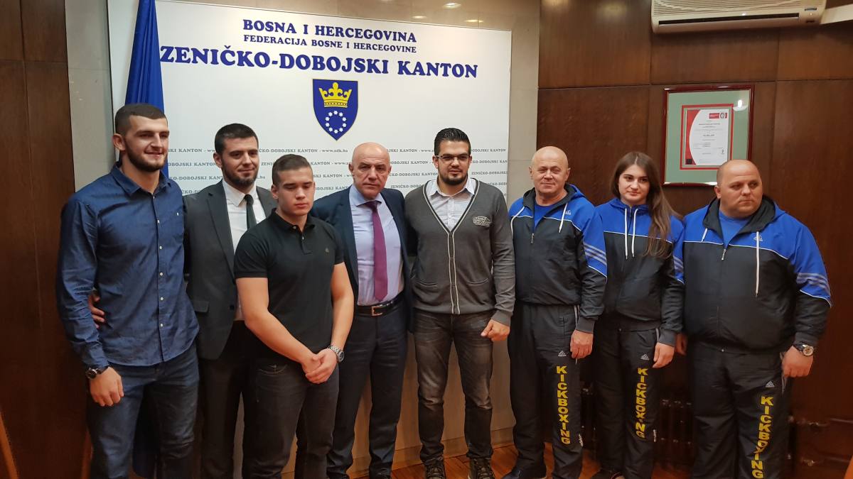 VIDEO+FOTO: prijem premijera Galijaševića za osvajače svjetskih kickboxing medalja iz ZDK – Miralem Galijašević, premijer Zeničko-dobojskog kantona danas je primio selektora reprezentacije BiH i predsjednika Federalnog kickboxing saveza Salku Zildžića i reprezentativce u kickboxingu Bahrudina Mahmića, Ahmeda Krnjića, članove KBV „Isak-Ze“ Zenica, osvajače zlatne i srebrene medalje na Prvenstvu svijeta za seniore održanom u Budimpešti od 3. do 11.11.2017.godine te takmičarku Jasminu Merdić iz Tešnja, članicu KBT „Titanium“ Usora koja je osvojila bronzanu medalju.