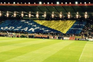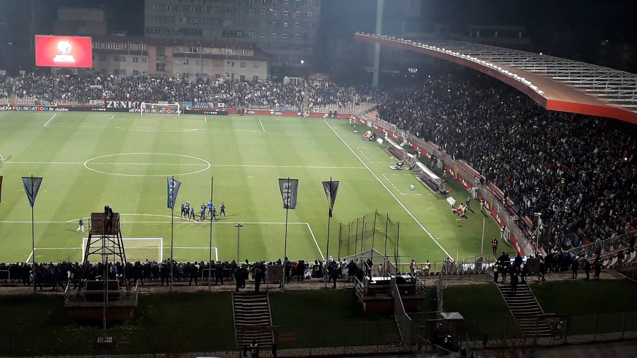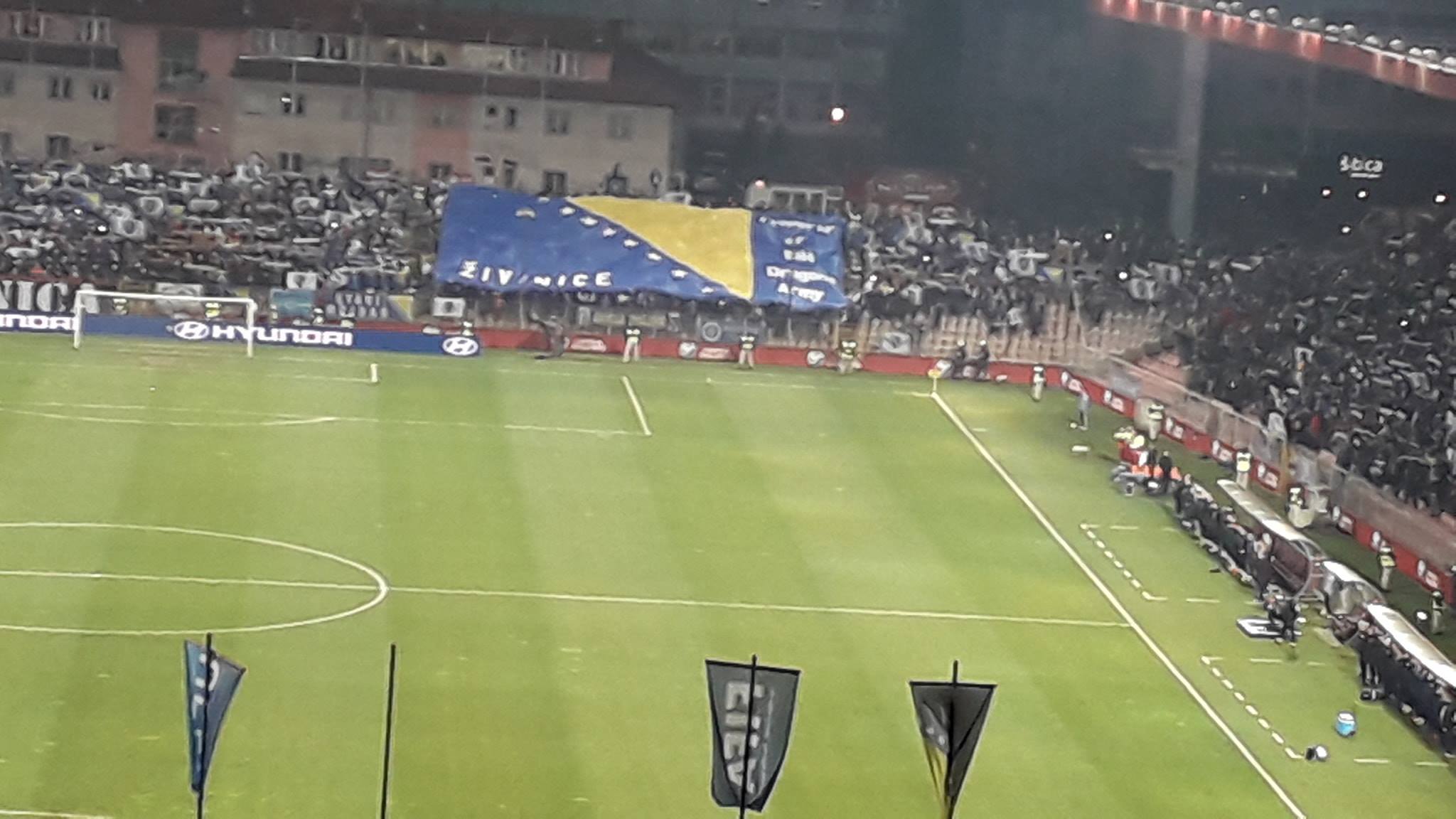 Na početku utakmice tribinama Bilinog polja odjekuje „Bosna je šampion“, a onda i skandiranje cijelog stadiona ime i prezime našeg teško povrijeđenog košarkaša, Jusufa Nurkića.