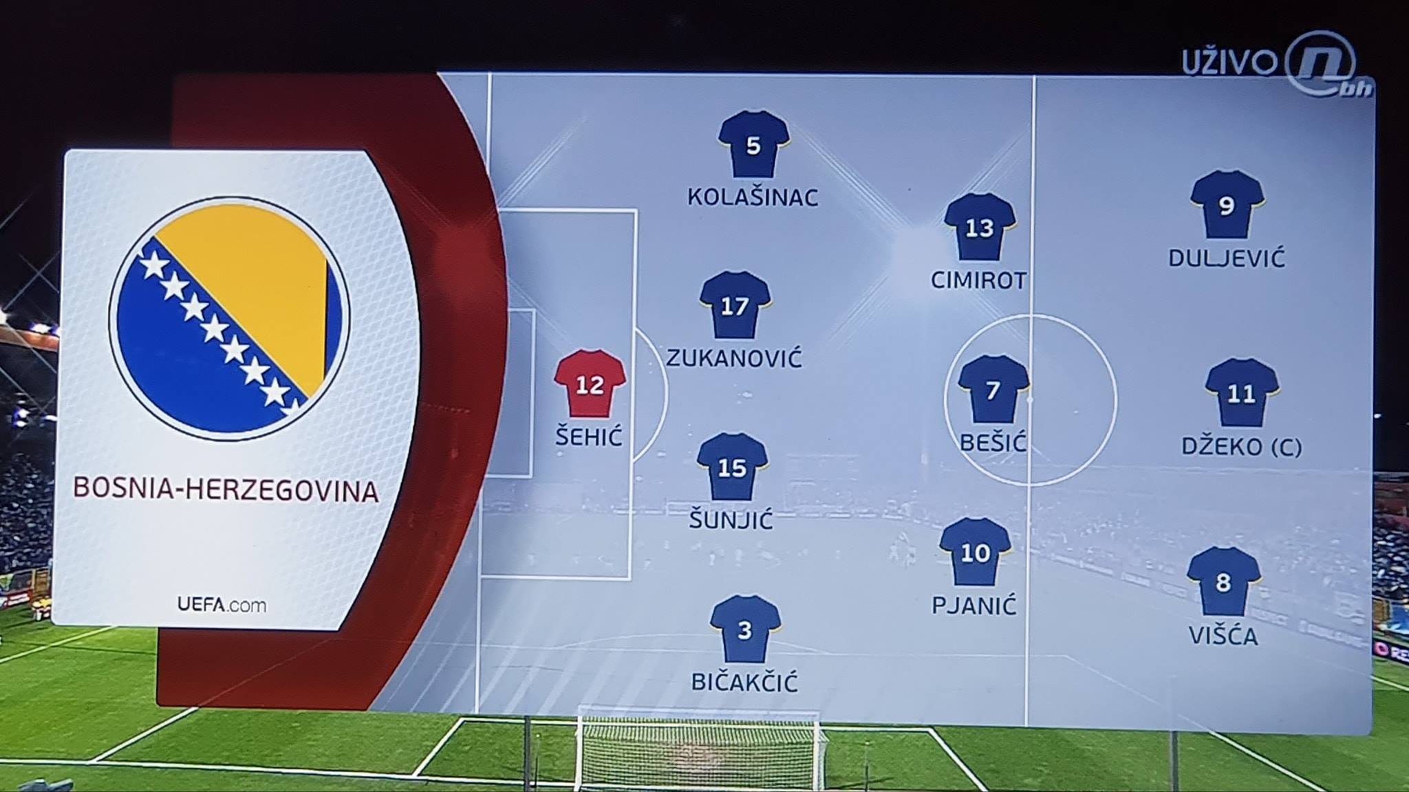 Šehić, Bičakčić, Kolašinac, Bešić, Višća, Duljević (od 80.Milošević), Pjanić, Džeko (od 90.Gojak), Cimirot (od 93.Krunić), Šunjić, Zukanović. (Selektor Robert Prosinečki);