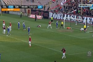 VIDEO+FOTO: Regoje majstorijom donio Čeliku pobjedu i korak ka opstanku u Premijer ligi – Domaći su fenomenalno ušli u susret. Nakon nekoliko solidnih napada, Bojan Regoje je pogodio za vodstvo Zeničana. Na ubačaj iz kornera reagovao je u maniru rasnog strijelca, i onda vrlo lijepim volej-udarcem od prečku smjestio loptu u mrežu.