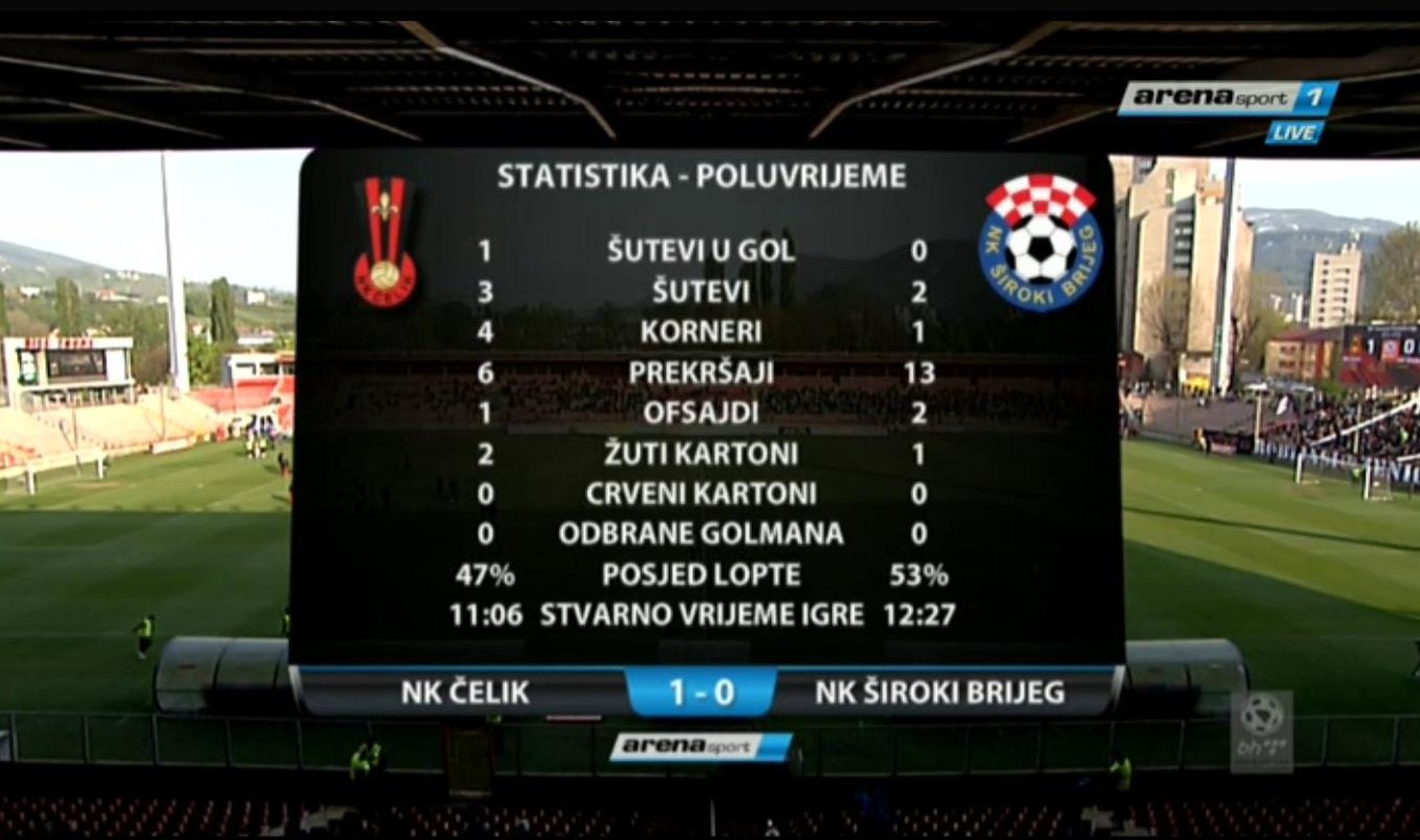 U nastavku prvog poluvremena gotovo ništa važno se nije desilo. Poslije pogotka uslijedio je mirniji dio utakmice od oko 25 minuta, da bi tek tada Hećo i Šišić stvorili ozbiljnije akcije pred golom gostiju, no bez većih uzbuđenja.