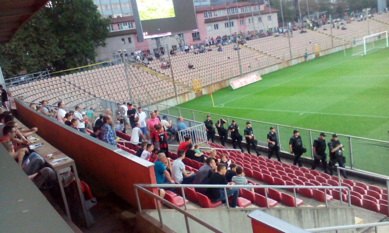 Prvo poluvrijeme je bilo veoma slabo i malo smo vidjeli pravog nogometa. Izdvajamo slobodan udarac u 24.minuti za goste, ali je Husić prebacio živi zid i gol Čelika. U 29.minuti dobar prodor Brkovića, kojem je u zadnjem trenutku loptu izbio Husić u korner.