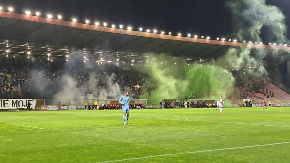 Nakon što je na samom startu utakmica bila prekinuta zbog bakljade navijača Čelika, sve je brzo nastavljeno.