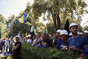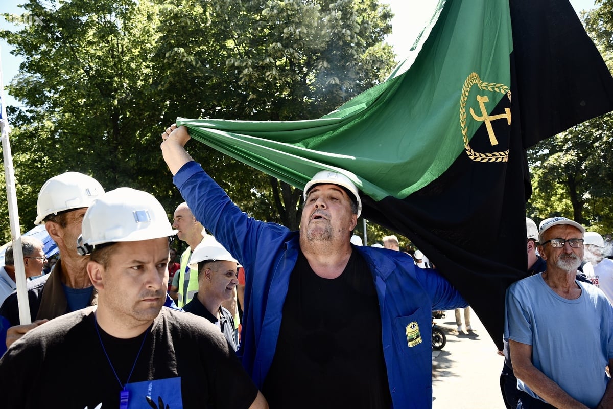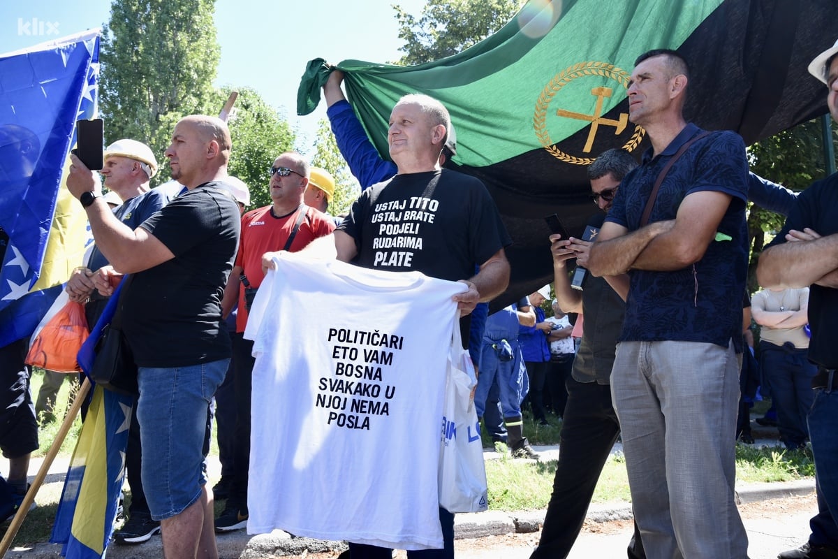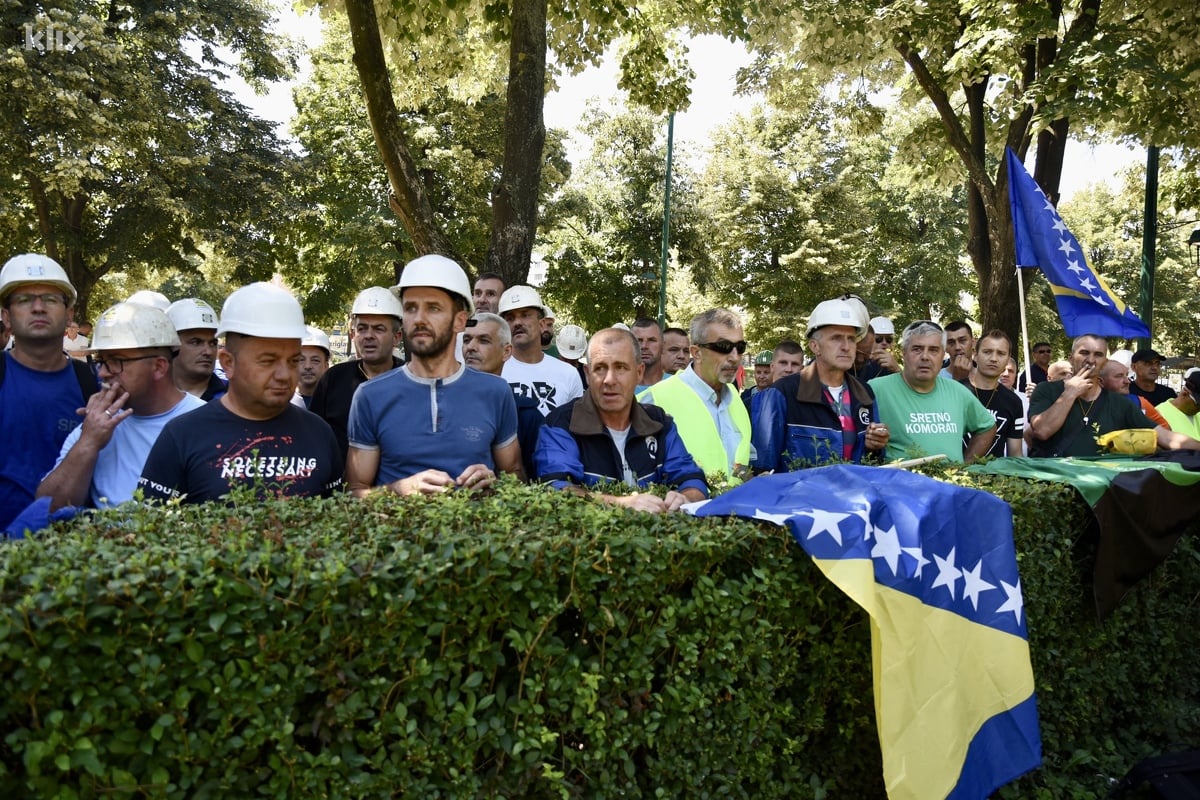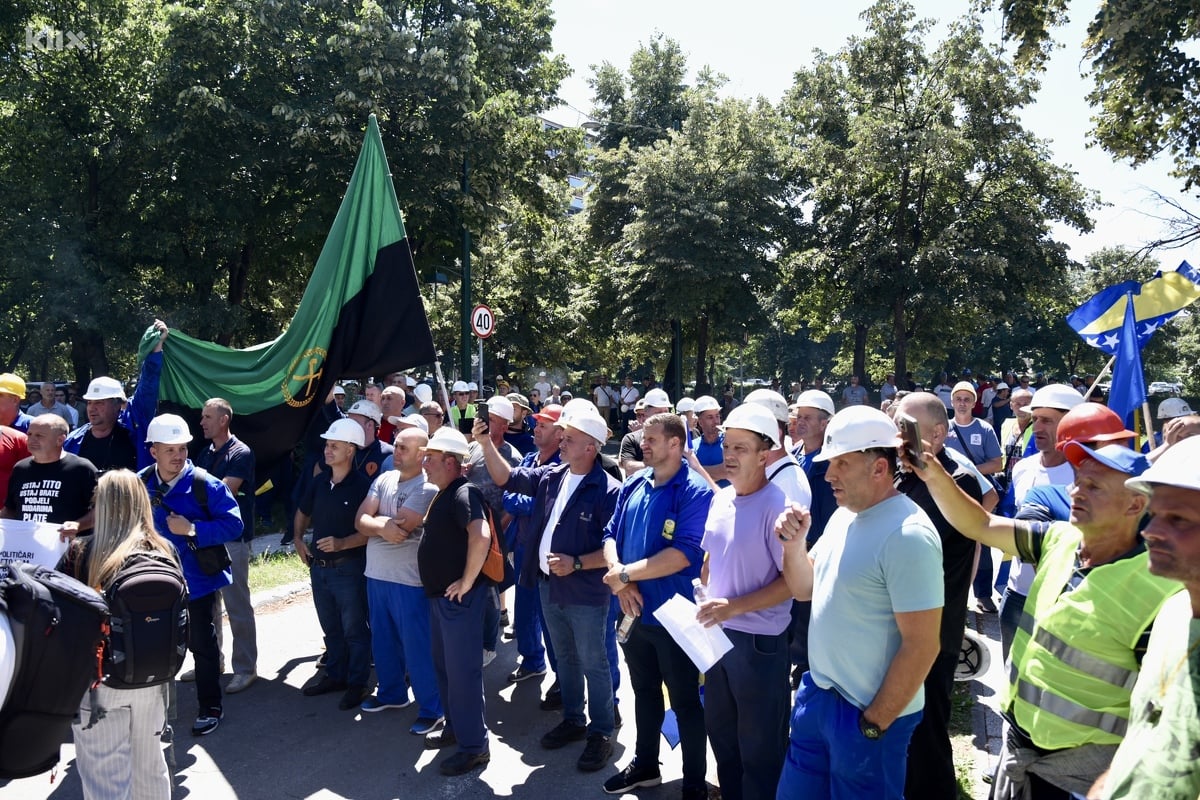 Rudari iz svih dijelova Federacije BiH stigli su pred zgradu Elektroprivrede u Sarajevu gdje su organizovali proteste povodom situacije u Rudniku mrkog uglja Zenica te neisplaćene plate za mjesec juni.