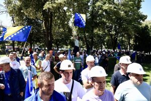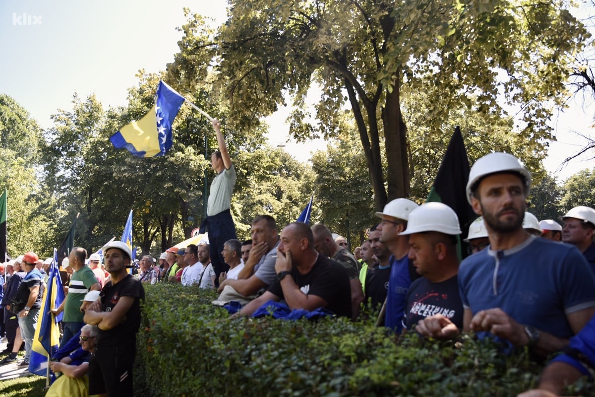 Nekoliko stotina rudara u jutarnjim satima stiglo je u Sarajevu gdje su se sa Željezničke stanice zaputili prema centrali Elektroprivrede Bosne i Hercegovine te su se okupili na ulazu u zgradu.