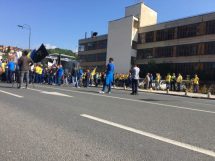 Pred zgradu Federalne vlade jutros je stiglo deset autobusa sa rudarima rudnika Kreka, Đurđevik, Gračanica, Breza, Zenica, Bila i Kakanj. Kako je danas kazao predsjednik Sindikata rudnika Sinan Husić, odluku o generalnom štrajku zakazanom za 13. septembar Sindikat će realizirati ako kolektivni ugovor ne bude ispoštovan. On je naglasio da će, u tom slučaju, pred Vladom Federacije BiH biti hiljade rudara.