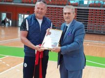 Uslijedila je ceremonija dodjele medalja i pehara za osvojeno prvo mjesto, koje je uručio predstavnik RS FBiH, Branko Vukojević, komesar takmičenja, kapitenu RK Čelik, Mevludinu Čehajiću.
