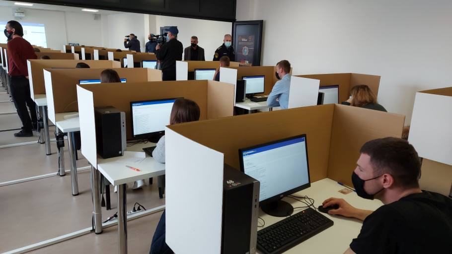 Tom prilikom, gospodin Larson i komesar Šut su nakon detaljne prezentacije svih faza i etapa konkursa koje su završene u proteklom periodu, na video zidu pratili uživo testiranje kandidata koje se odvijalo u vrijeme ove posjete, što je svakako doprinjelo stvaranju objektivne slike o svakom detalju softverske zaštite i nadzora cjelokupnog postupka testiranja, ali i rada članova Komisije.