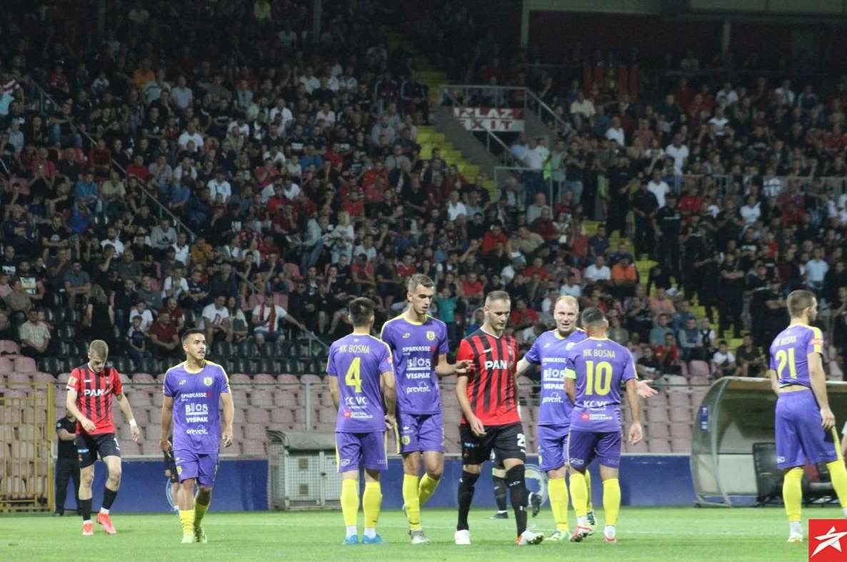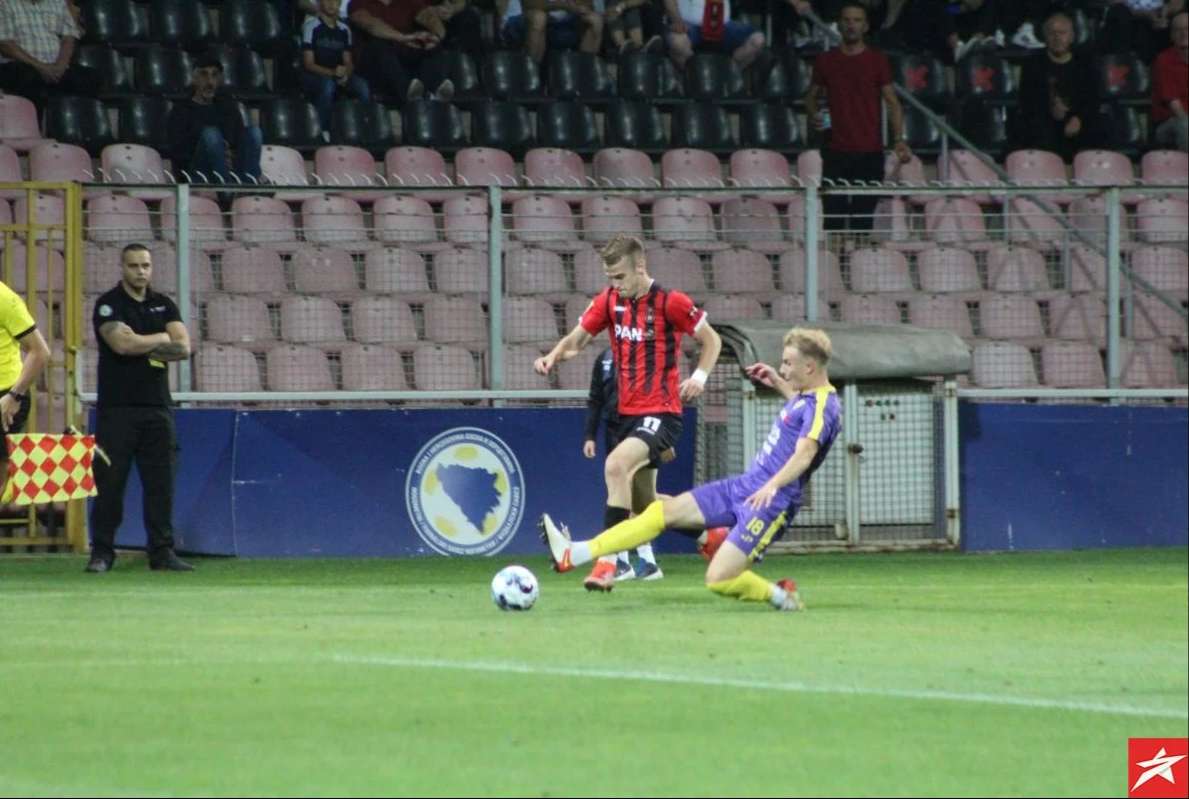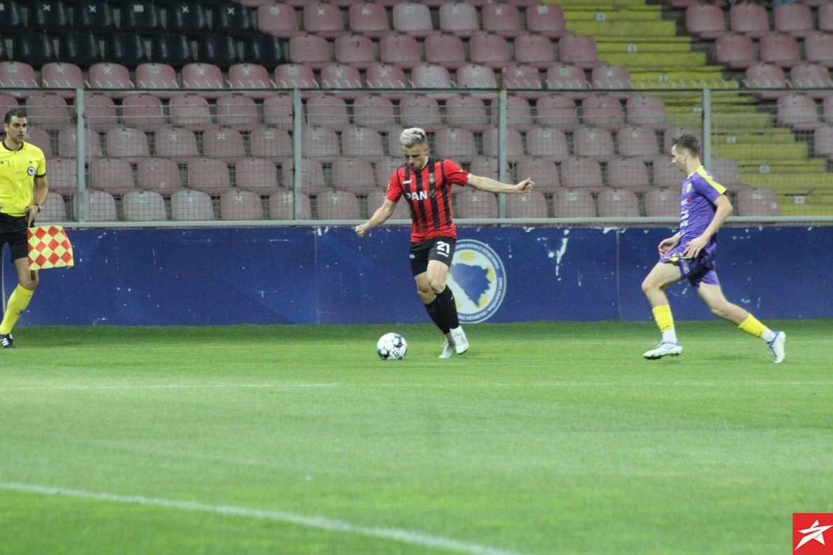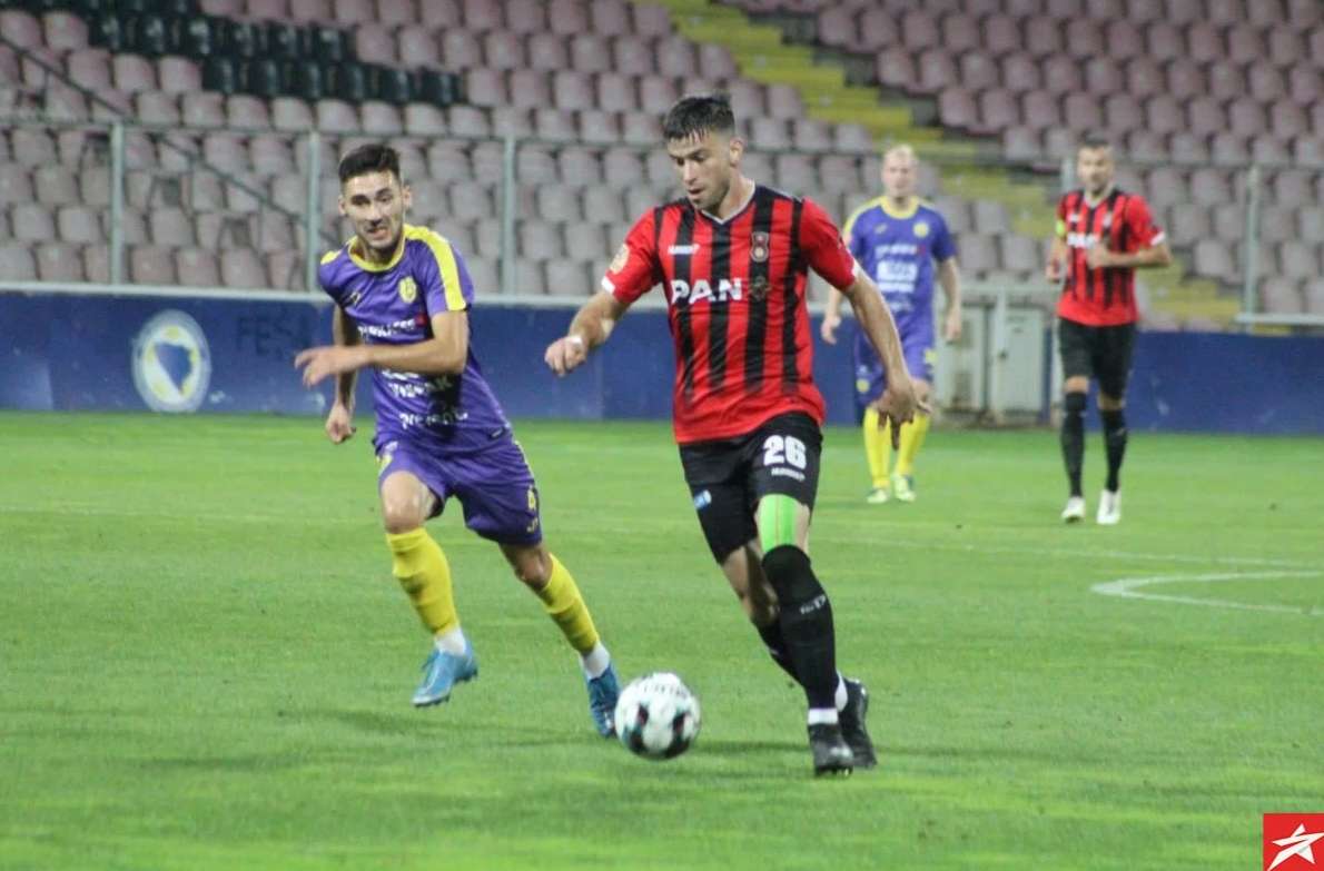 Domaći nogometaši od početka su pritiskali gol gostiju, ali nisu uspjeli da savladaju Bekana, Isaković je bio najbliži u 13. minuti ali je malo zakasnio nakon ubacivanja iz kornera. S druge strane gosti su preko Husnića i Vile imali dvije sjajne šanse u 15 i 16. minuti, ali Durmo je sjajno odbranio. Ipak u 36. minuti hladan tuš, Belmi Vila ponajbolji gostujući igrač nakon gužve i nekoliko odbijenih lopti zakucao je istu pod prečku za vodstvo gostiju 0:1. Imali su domaći nogometaši priliku u 45. minuti sa bijele tačke da poravnaju rezultat, ali je Ali Međuseljac slabo šutirao i Bekan je odbranio njegov udarac.