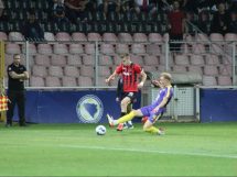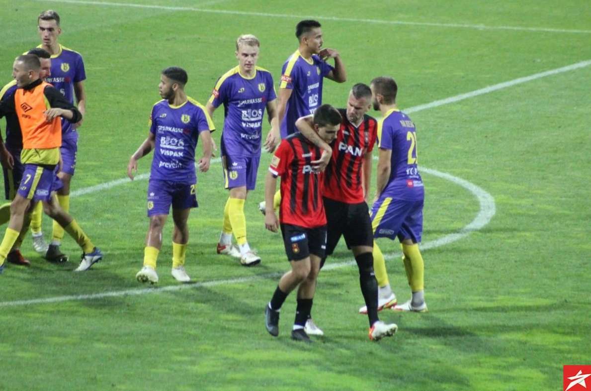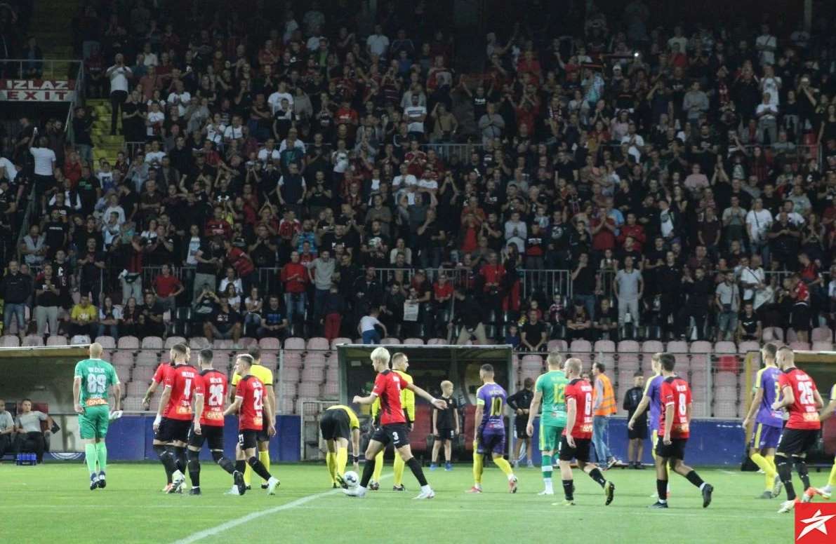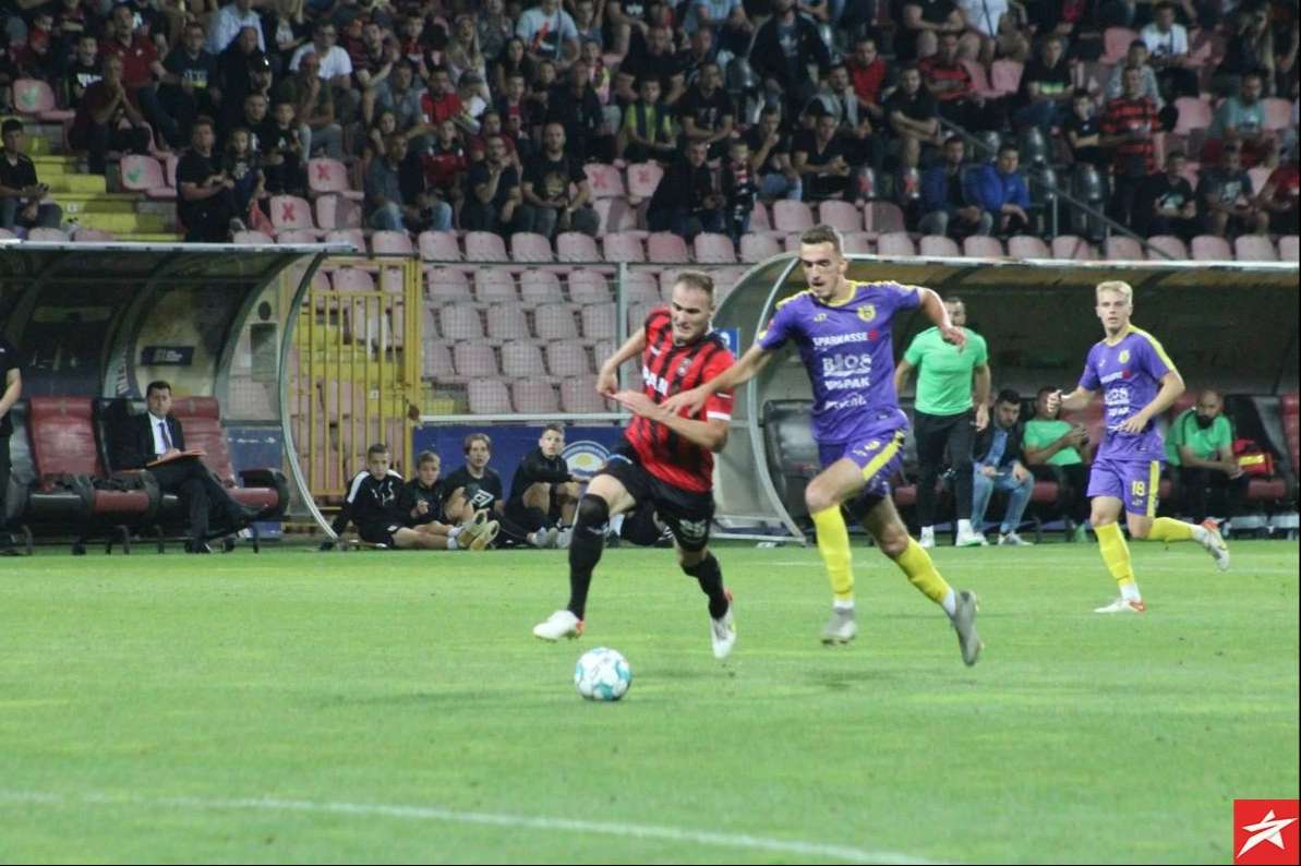 Domaći nogometaši od početka su pritiskali gol gostiju, ali nisu uspjeli da savladaju Bekana, Isaković je bio najbliži u 13. minuti ali je malo zakasnio nakon ubacivanja iz kornera. S druge strane gosti su preko Husnića i Vile imali dvije sjajne šanse u 15 i 16. minuti, ali Durmo je sjajno odbranio. Ipak u 36. minuti hladan tuš, Belmi Vila ponajbolji gostujući igrač nakon gužve i nekoliko odbijenih lopti zakucao je istu pod prečku za vodstvo gostiju 0:1. Imali su domaći nogometaši priliku u 45. minuti sa bijele tačke da poravnaju rezultat, ali je Ali Međuseljac slabo šutirao i Bekan je odbranio njegov udarac.
