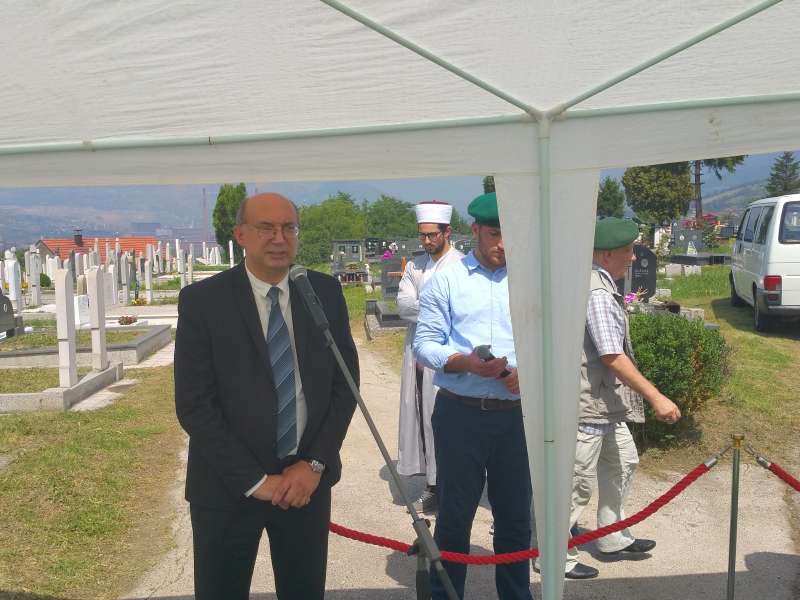 Bivši premijer Edhem Bičakčić, aktuelni dopremijer Vesko Drljača i federalni ministar Amir Zukić, članovi kabineta premijera Vlade FBiH, premijera Vlade Zeničko-dobojskog kantona, prijatelji iz SDA, Grada Zenice, veterana košarkaškog kluba “Čelik” okupili su se ko i svake godine na Ahmetovom mezaru.