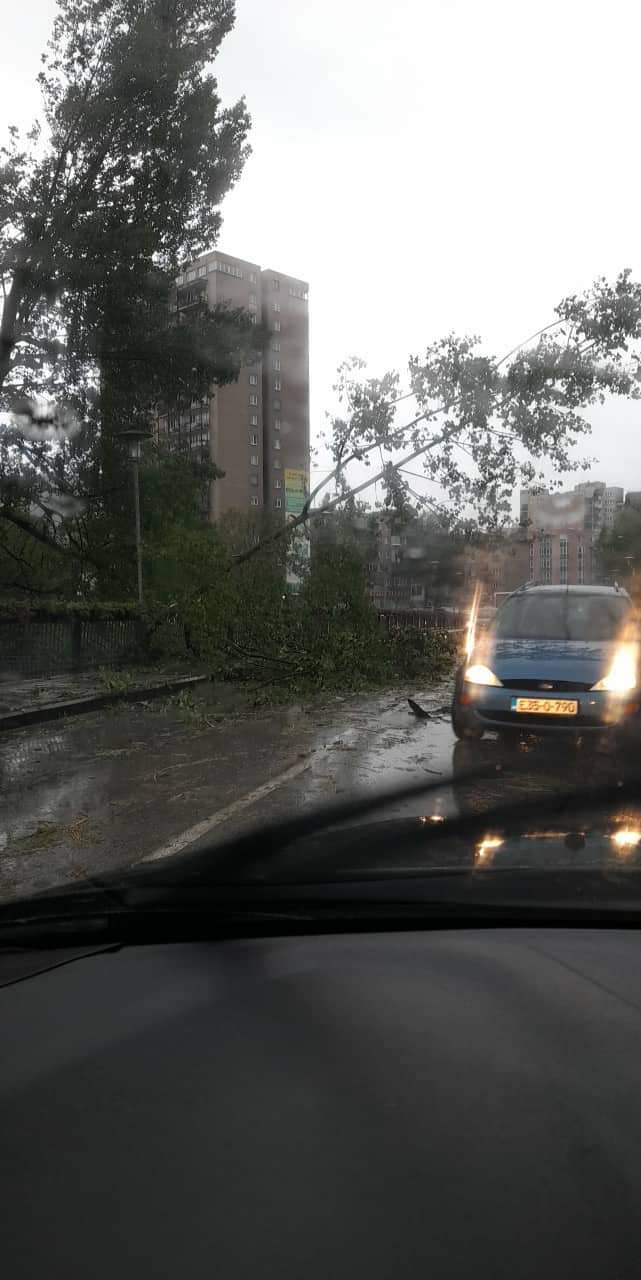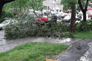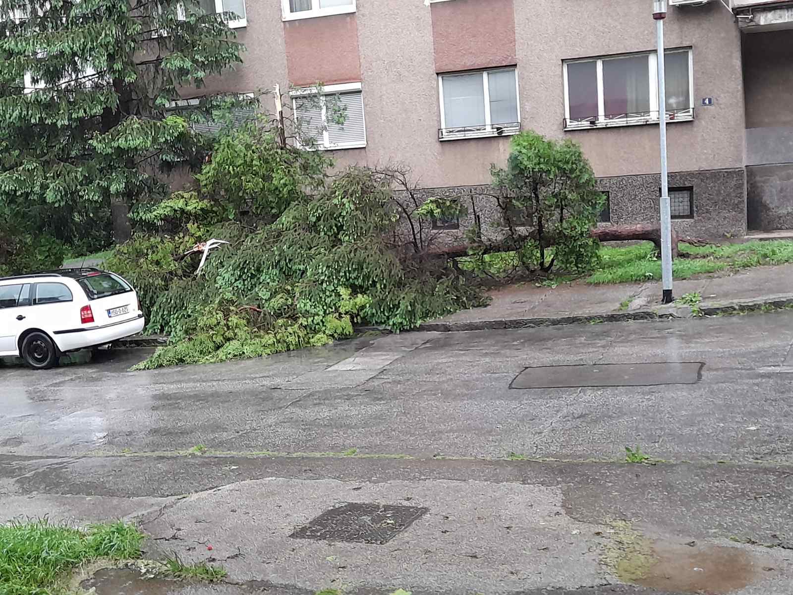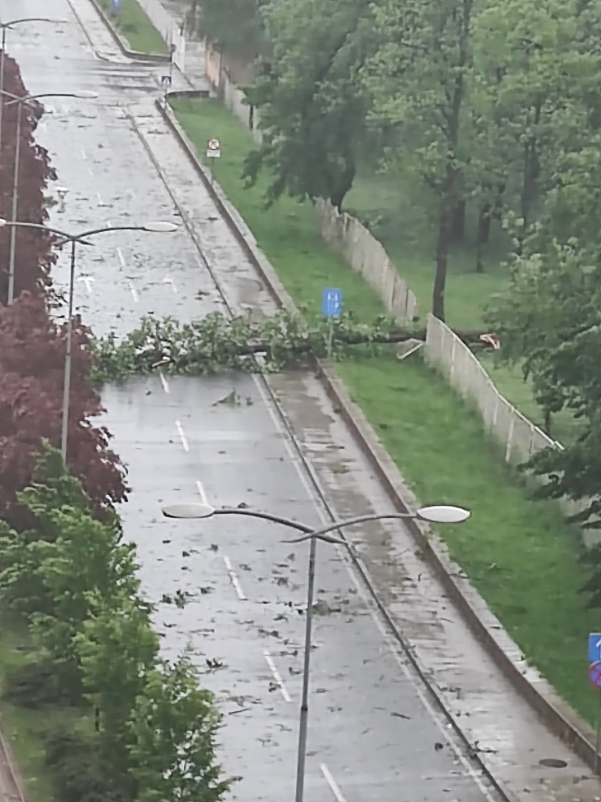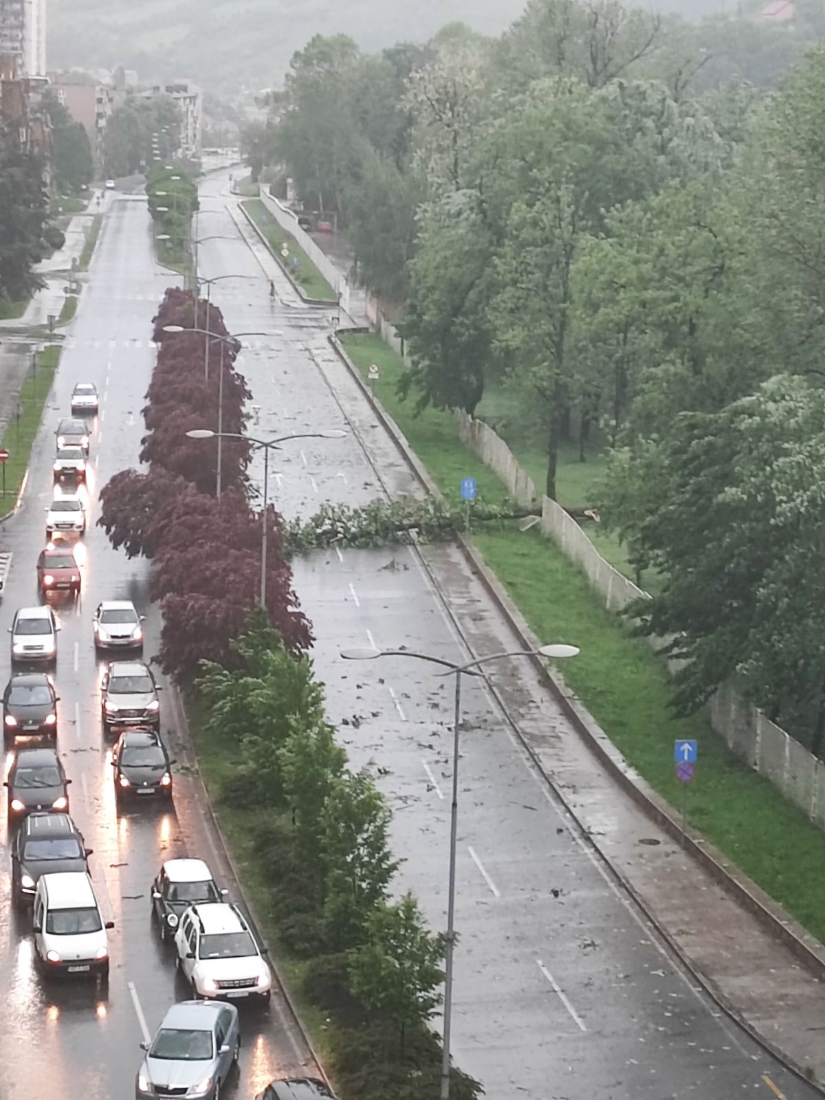 Snažni vjetar je u gradu obarao stabla koja su prouzrokovala materijalni štetu ili su blokirala/otežala saobraćaj.