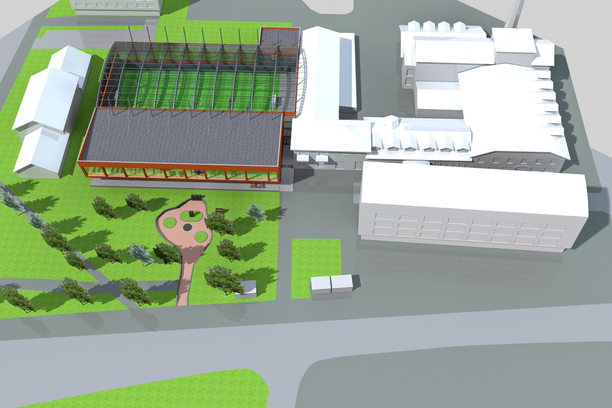 Idejni projekat za sportsko-rekreativno-poslovni centar (SRPC) „Papirna” planiran je na mjestu postojećeg stadiona „Papirna“. Gabariti glavnog objekta su 45,25m x 12,25 m u prizemlju. U prizemlju su projektovani poslovni prostori i caffe.