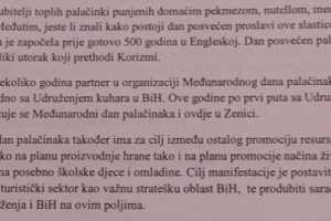 Ova manifestacija se po prvi put obilježava u Zenici, a učeštvovale su zeničke osnovne i srednje škole uz podršku brojnih sponzora te Udruženja kuhara Bosne i Hercegovine koji ocjenjuju napravljene palačinaka.
