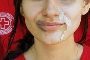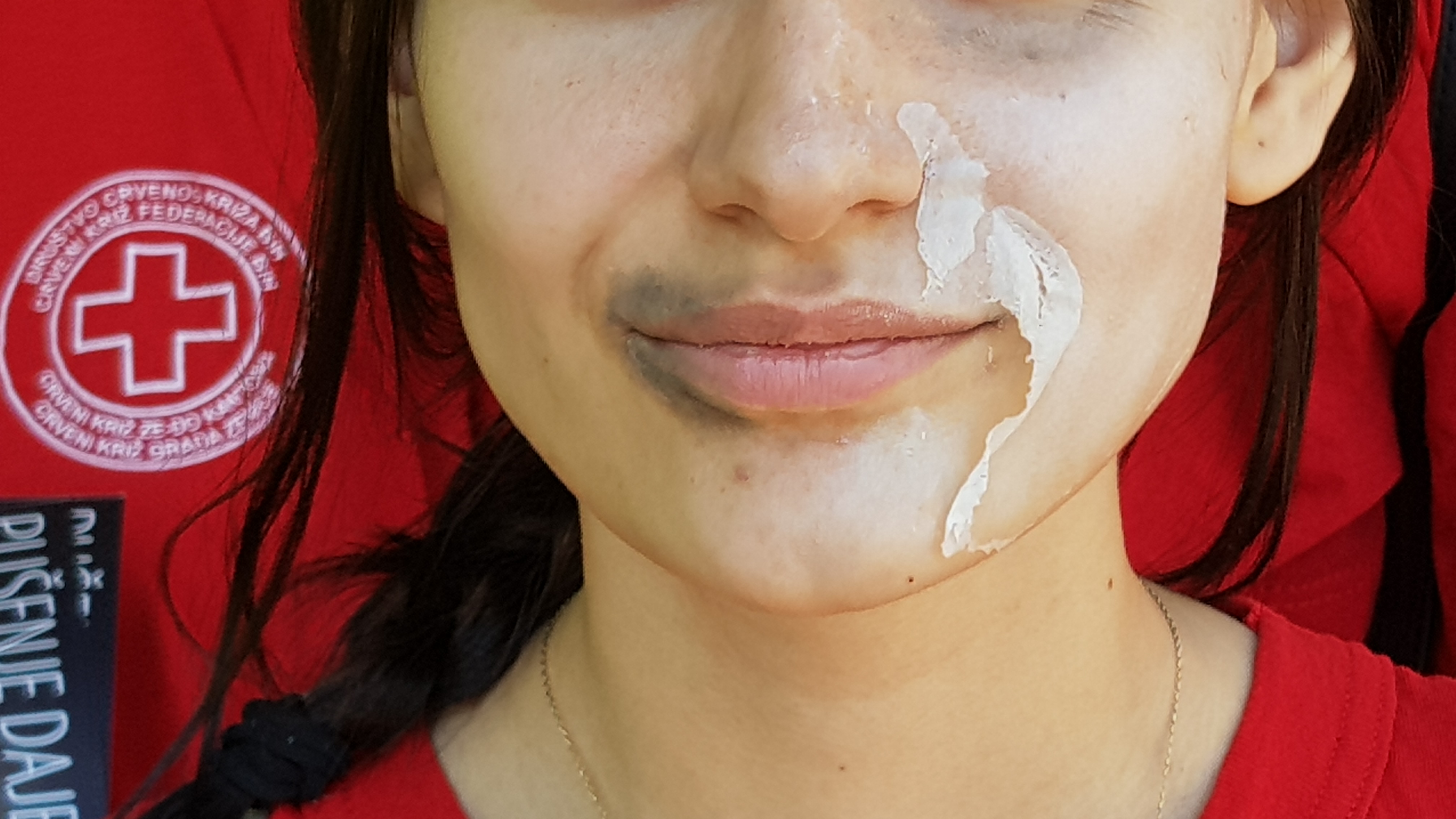 Volonteri Crvenog križa su upotrebom šminke i drugih kozmetičkih pomagala oslikali „povrede“ na vratu, u predjelu usana, lica, te na prstima, i na slikovit način prikazali štetne promjene na tijelu nastale kao posljedica konzumiranja duhanskog dima.