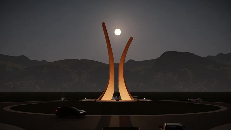 – Centralna tačka kružnog toka bila bi skulptura koja predstavlja spajanje suprotnosti. Ona istovremeno predstavlja sjever i jug, kapije ka drugoj strani svijeta, kao i zbližavanje, poljubac i zagrljaj dvije suprotstavljene strane. Njena promjenjiva priroda asocira na ples, isprepletene udove, zagrljaj, plamen. Skulptura podsjeća promatrača da je udaljenost samo iluzija, koja podliježe ljudskoj mašti i sposobnosti da sagleda stvari iz svih uglova. U korist našeg cilja povezivanja dva opozita, sjevera i juga, potrebno je na ovaj način prepoznati realnost koja stoji izvan generalizacija i podjela, ističe Kuduzović.