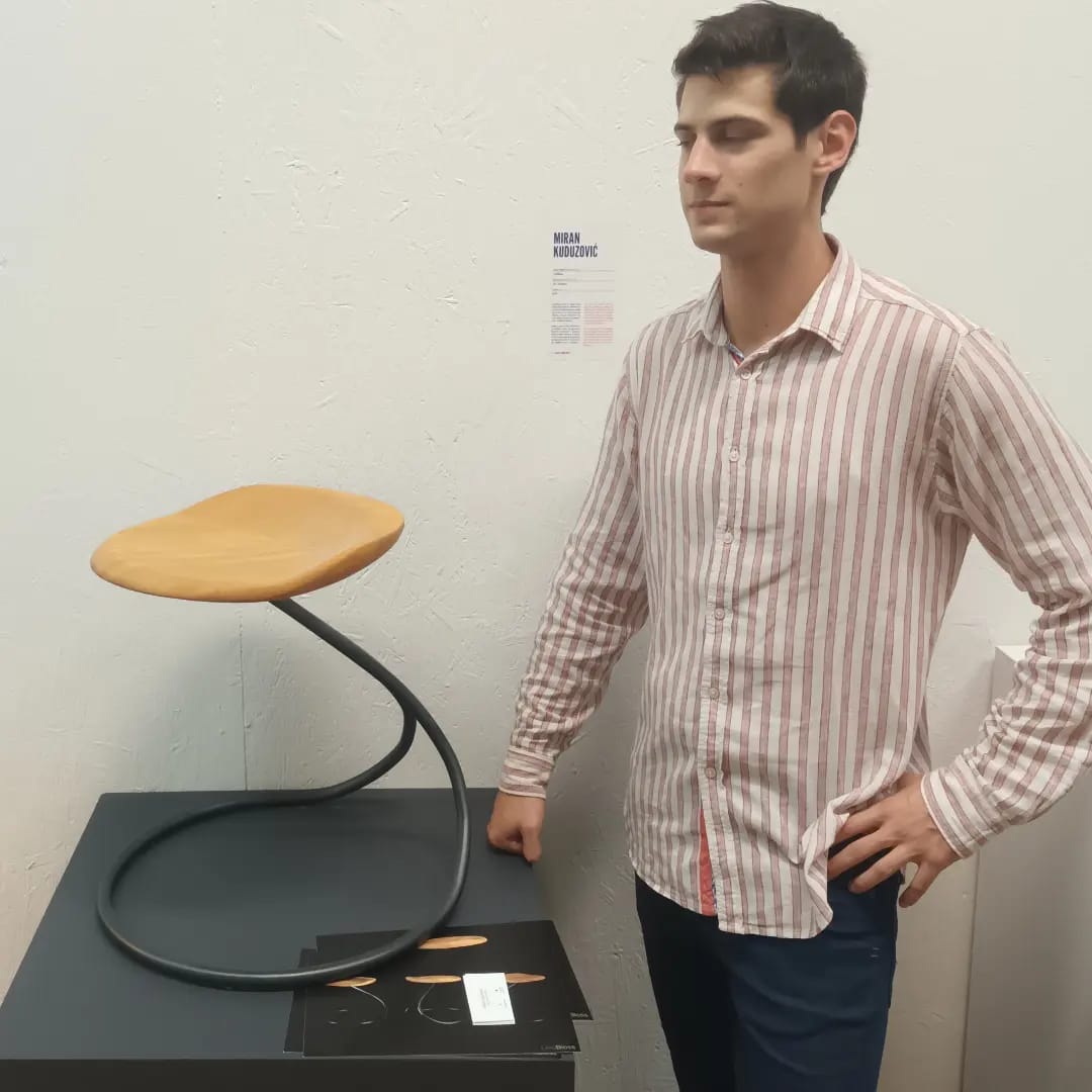 Na Zagreb dizajn Weeku kao finalista-izlagač u kategoriji produkt-dizajn Miran Kuduzović je ušao sa eksponatom hoker stolice (bez naslona), predstavljenom kroz fluidnu formu u modernom izričaju.