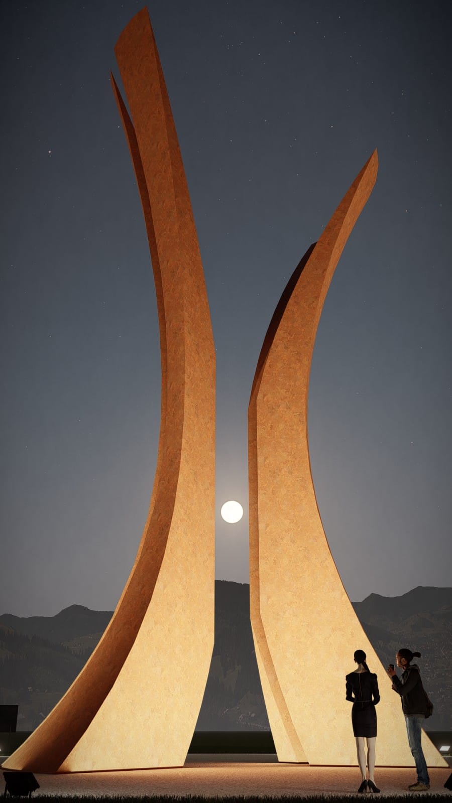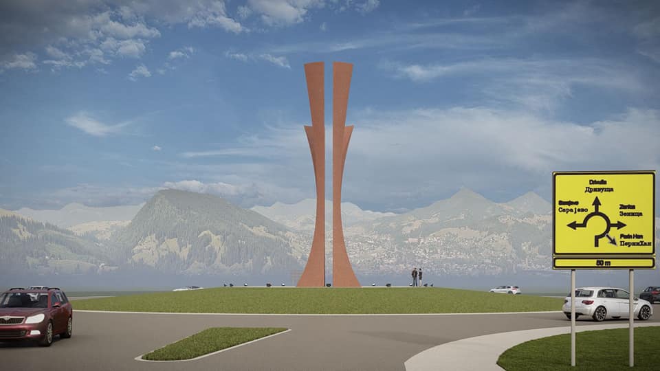– Centralna tačka kružnog toka bila bi skulptura koja predstavlja spajanje suprotnosti. Ona istovremeno predstavlja sjever i jug, kapije ka drugoj strani svijeta, kao i zbližavanje, poljubac i zagrljaj dvije suprotstavljene strane. Njena promjenjiva priroda asocira na ples, isprepletene udove, zagrljaj, plamen. Skulptura podsjeća promatrača da je udaljenost samo iluzija, koja podliježe ljudskoj mašti i sposobnosti da sagleda stvari iz svih uglova. U korist našeg cilja povezivanja dva opozita, sjevera i juga, potrebno je na ovaj način prepoznati realnost koja stoji izvan generalizacija i podjela, ističe Kuduzović.