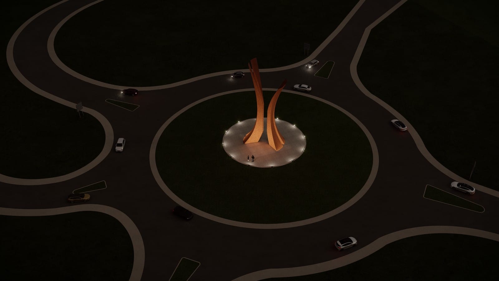 Prijedlog za osvjetljavanje skulpture je upotreba 12 LED reflektora, poredanih oko nje i usmjerenih ka objektu. Reflektori su po mogućnosti ukopani u zemlju, kako bi se umanjilo ometanje učesnika u saobraćaju.