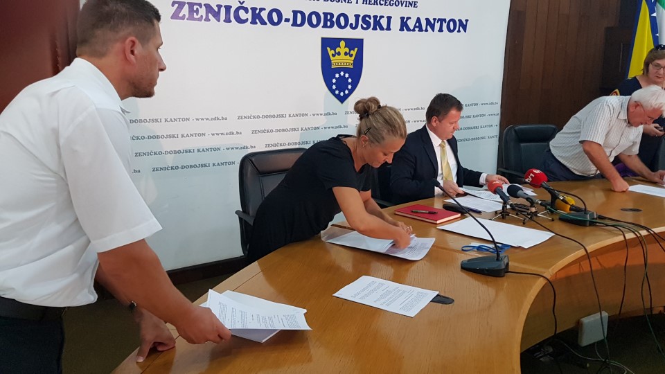 VIDEO+FOTO: Vlada ZDK i Ministarstvo okoliša – Za 14 projekata upravljanja otpadom izdvojeno 650 hiljada KM – U zgradi Vlade Zeničko-dobojskog kantona upriličeno je potpisivanje ugovora sa  korisnicima sredstava Fonda za zaštitu okoliša čiji projekti su odabrani u proceduri provođenja Javnog poziva za realizaciju projekata iz oblasti zaštite okoliša za 2017. godinu, koji se odnose  na oblast upravljanja otpadom.