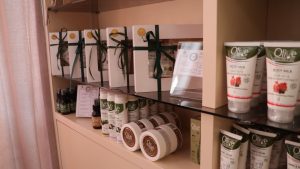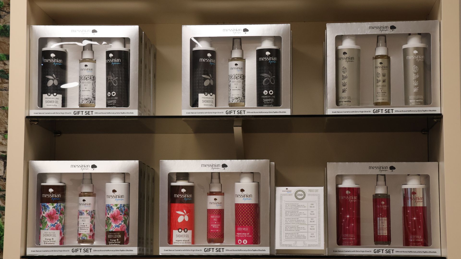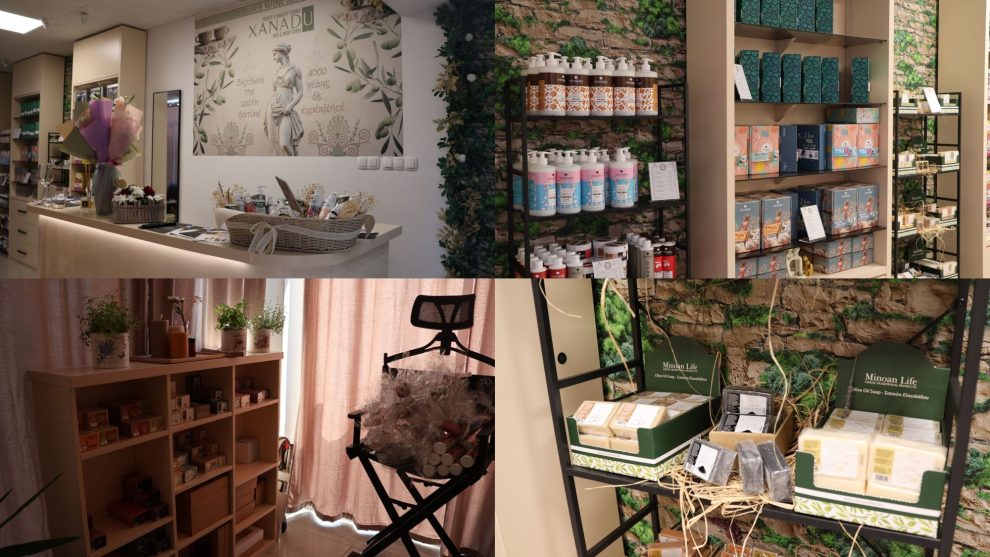 Police shopa krase proizvodi koji nose duh juga, konkretno Grčke: vrhunska maslinova ulja, prirodna kozmetika, ručno rađeni sapuni, med te unikatni poklon setovi. Pored toga, XANADU nudi i profesionalni make-up lounge – prostor posvećen ljepoti, njezi i personaliziranim uslugama.