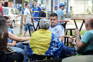 Navijači su već zauzeli lokale u blizini stadiona i atmosfera je optimistična ako je suditi prema prvim fotografijama i snimcima naših reportera.