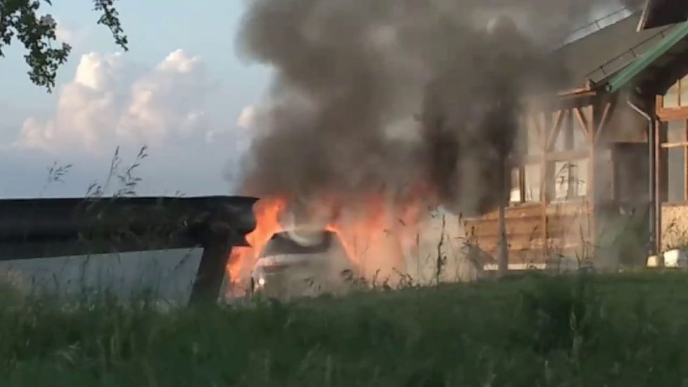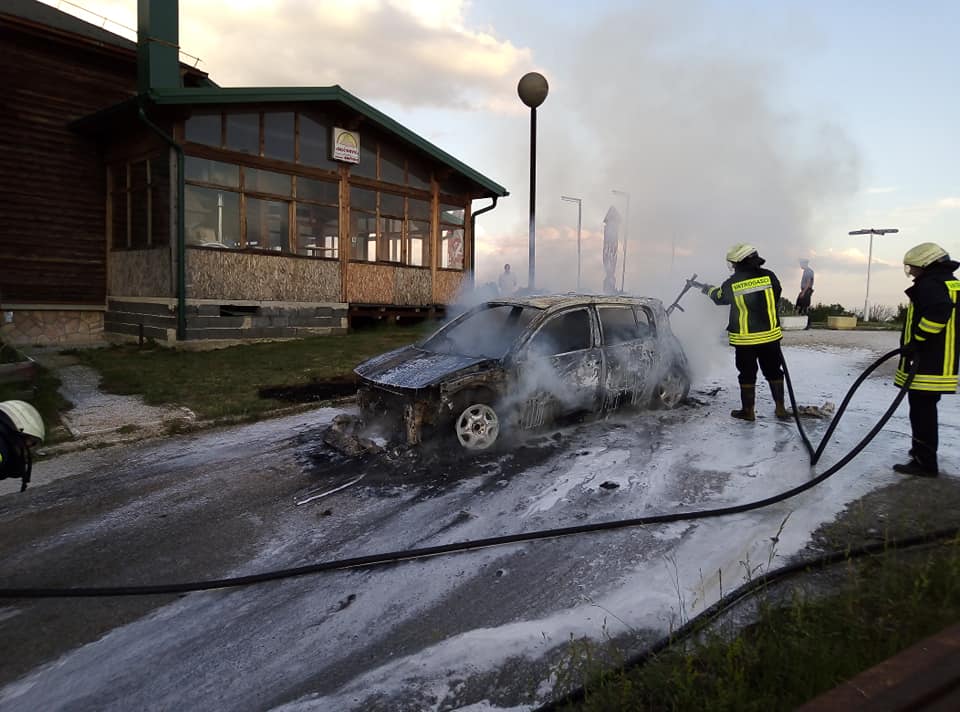 Danas kasno poslijepodne došlo je do samozapaljena putničkog automobila na parkingu izletiša Smetovi. Izgorio je Renault Megane, a požar su lokalizirali zenički vatrogasci. Za video se zahvaljujemo Amelu N., koji nam je ukazao na video sa FB stranice Babino. Fotografije gašenja i intervencije vatrogasaca su preuzete od kolege Edina Sinanovića (novinara RTV Zenica). Fotografije ugašenog vozila poslao nam je čitalac Maid.