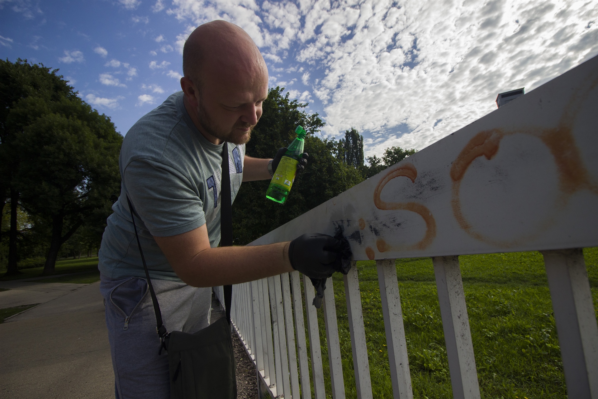 VIDEO+FOTO: Zenica – Volonteri na poziv FGZ očistili Jalijski most od grafita – Više desetina građana Zenice odazvalo se akciji čišćenja grafita na Jalijskom mostu, koji spaja park Kamberovića polje s centrom grada. Akciju čišćenja mosta od grafita pokrenule su nevladine organizacije Forum građana Zenice i Alfa Romeo klub iz Zenice, javlja Anadolu Agency (AA). Akcija čišćenja mosta te skidanje uništene rasvjete ugrađene u rukohvat mosta počela je u nedjelju ujutro i trajat će tokom cijelog dana.