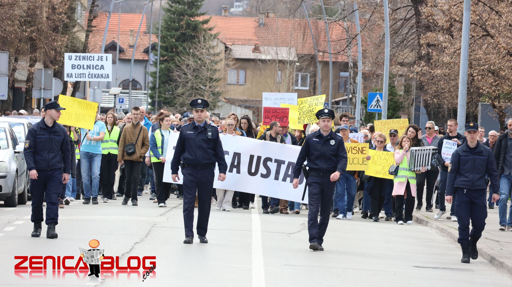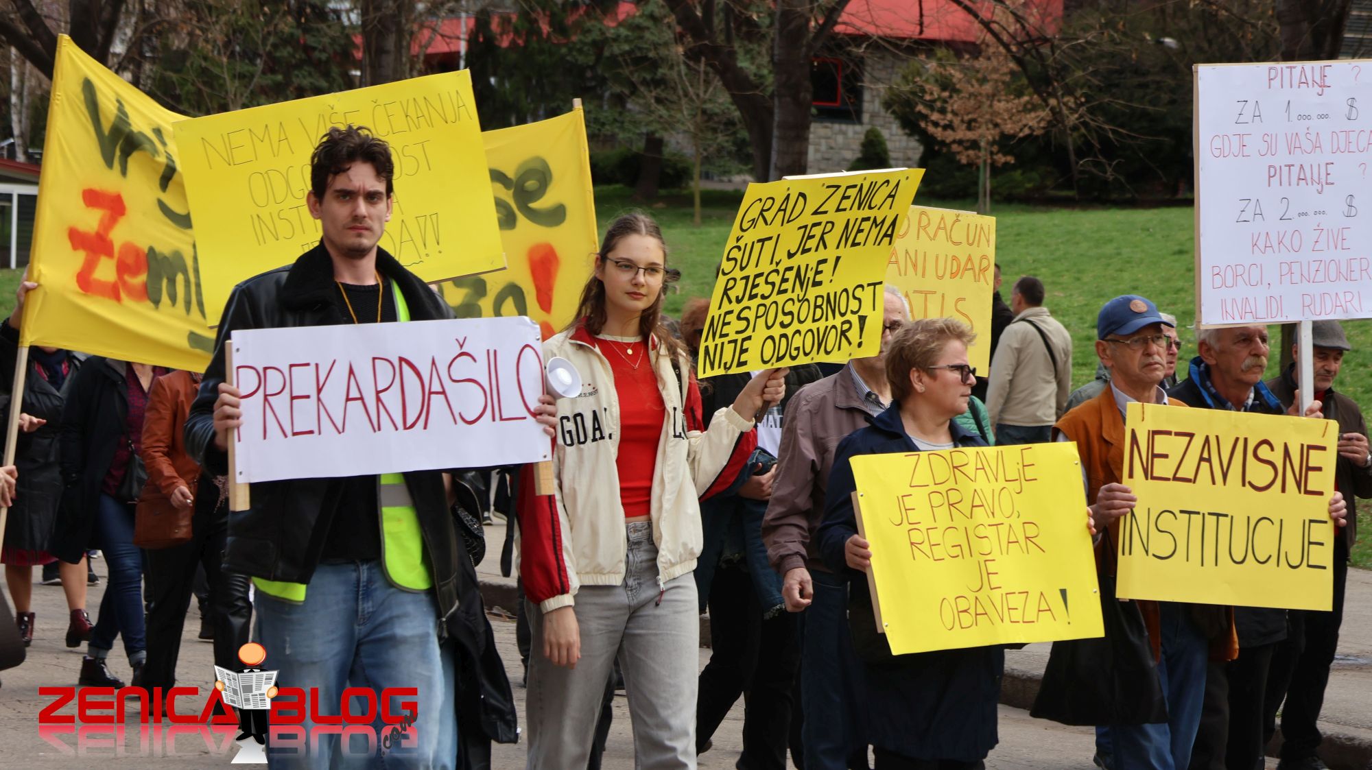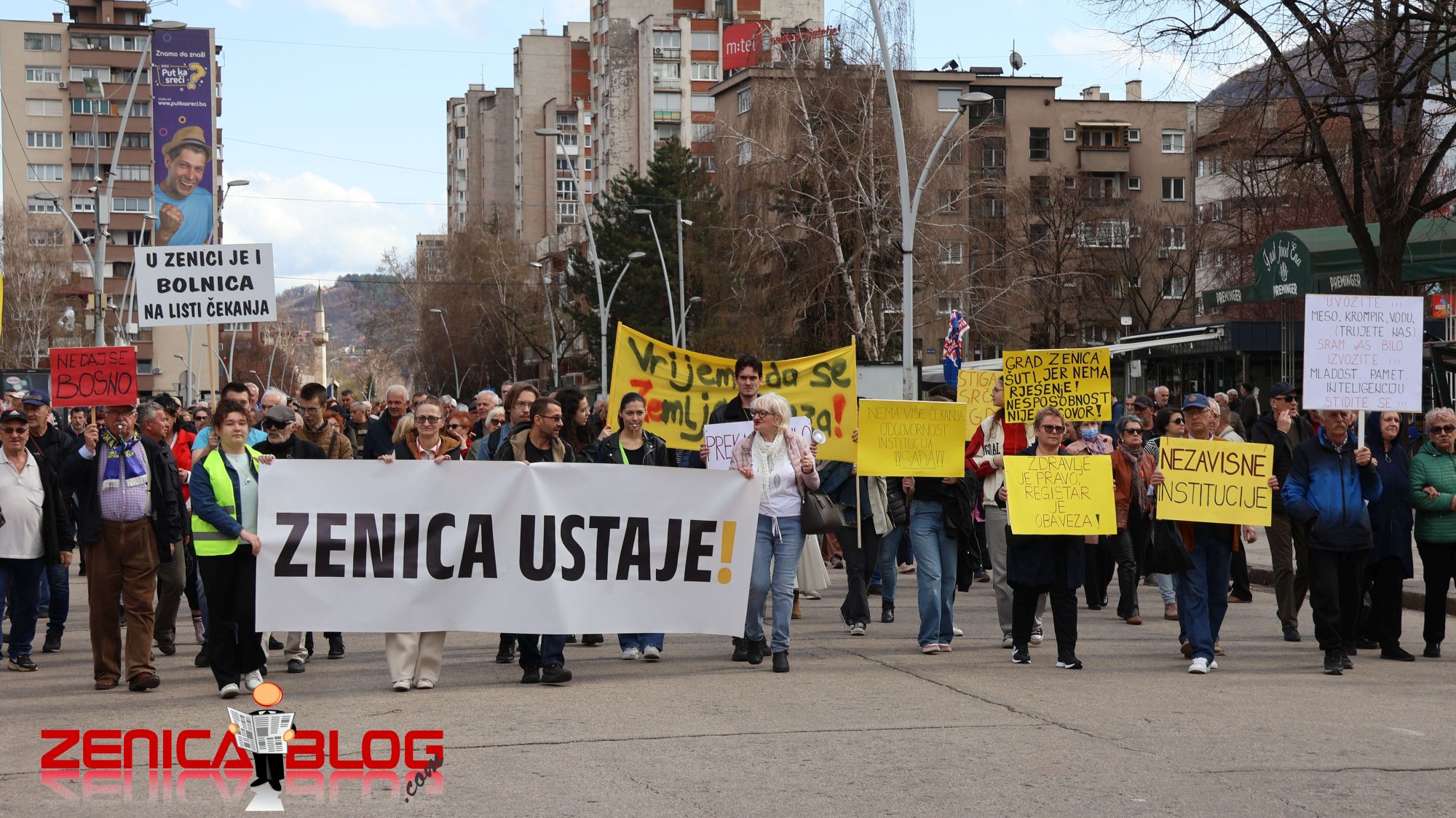 Skup je i ovoga puta počeo minutom šutnje za stradale u prošlogodišnjim poplavama i klizištima u Jablanici, a demonstranti su se danas zaustavljali i u ulicama ispred Gradske uprave Zenica te sjedišta Vlade Zeničko-dobojskog kantona.