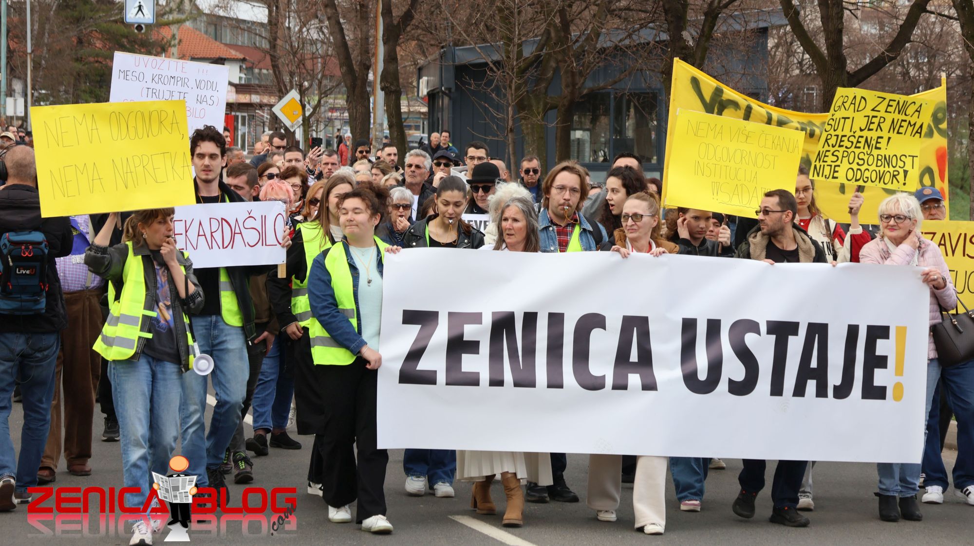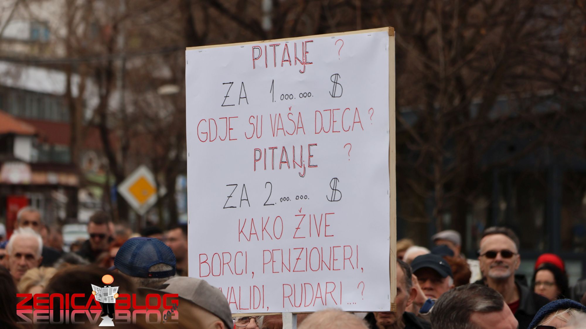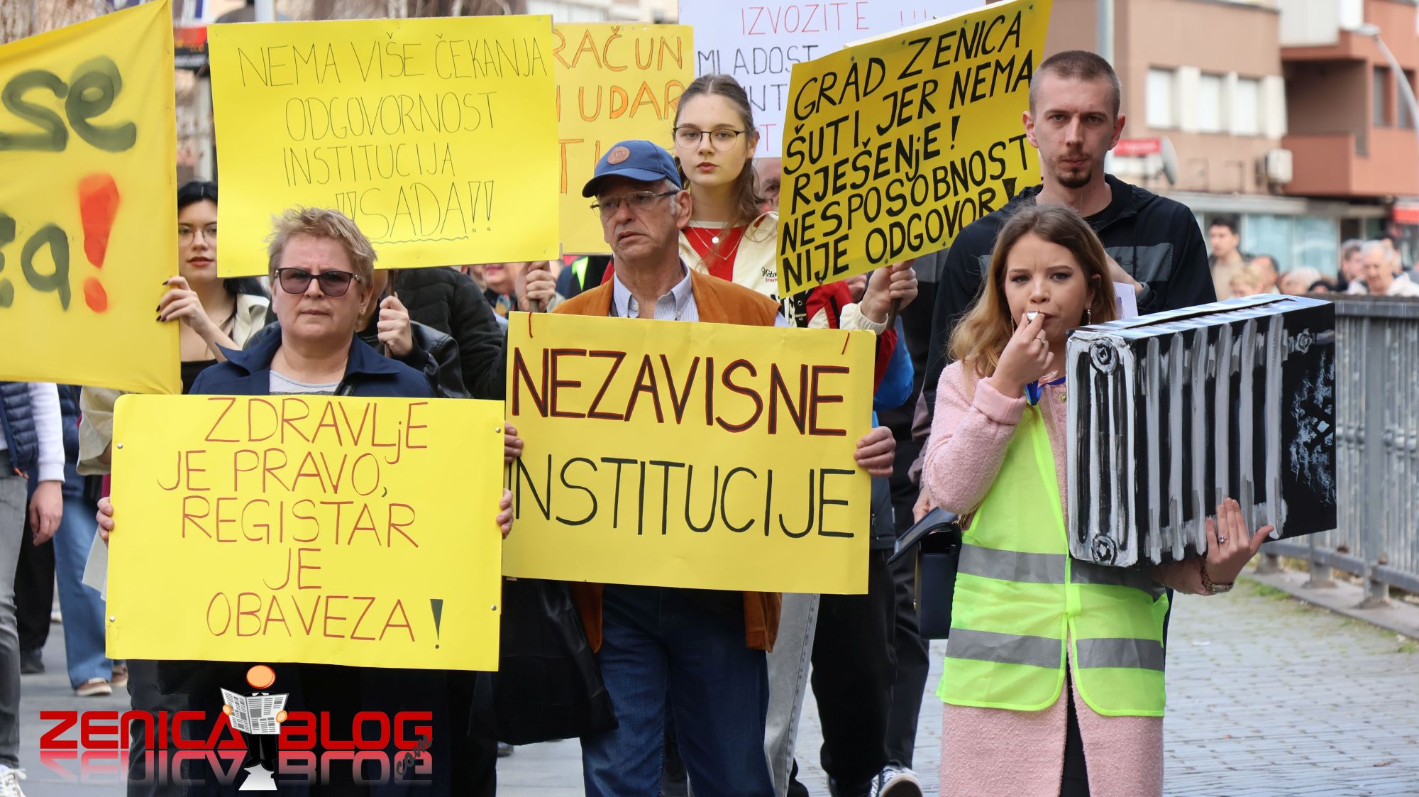 Skup je i ovoga puta počeo minutom šutnje za stradale u prošlogodišnjim poplavama i klizištima u Jablanici, a demonstranti su se danas zaustavljali i u ulicama ispred Gradske uprave Zenica te sjedišta Vlade Zeničko-dobojskog kantona.