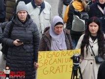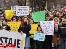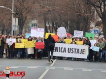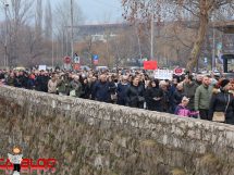 Protest ovog puta također počeo odavanjem počasti stradalim u prošlogodišnjim poplavama i klizištima u Jablanici, kao i žrtvama porodičnog te vršnjačkog nasilja.