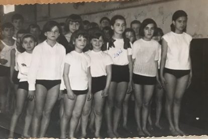 FOTO: Evo naŠi smo jednu maminu fotografiju baš iz tog vremena. Kao što je ona rekla ova slika sa razglednice je slikana oko 1968. godine, a ova njena slika je iz 1967. sa takmičenja u gimnastici u Zenici. Kao što možete da vidite nosila je pletenice kao na razglednici i vezane sa mašnicama, piše Dunja.